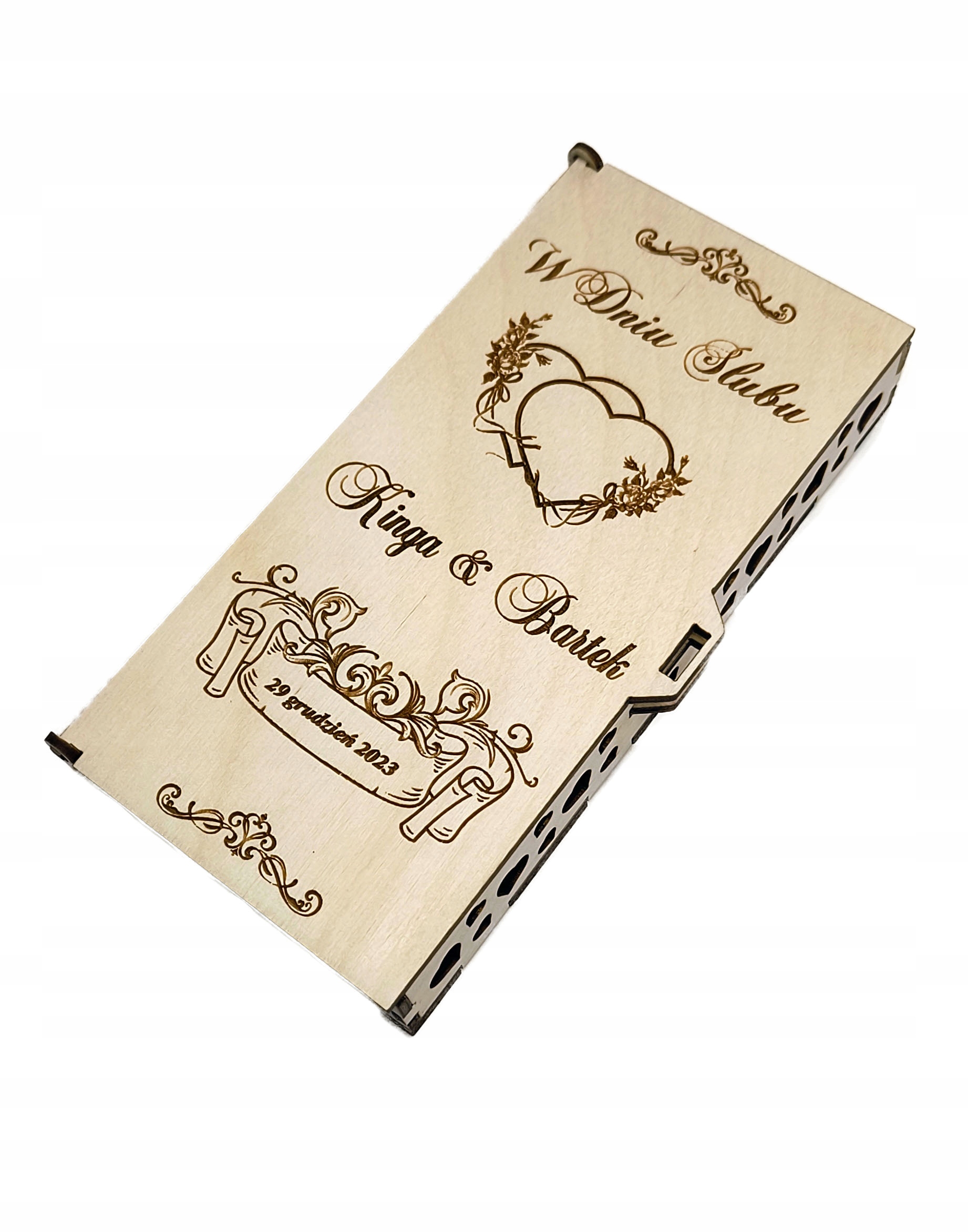 коробка с индивидуальной гравировкой за деньги в качестве подарка в день свадьбы