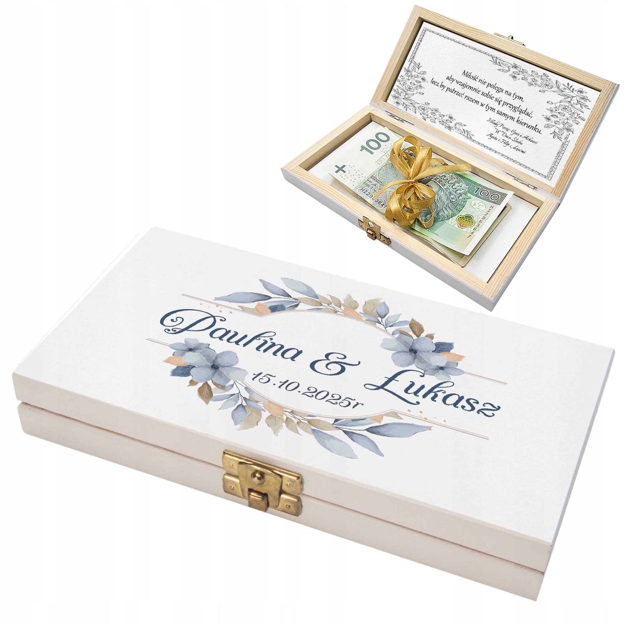 готовый персонализированный банкнот в качестве идеального подарка для жениха и невесты! Коробка с персонализированной графикой и элегантной золотой застежкой