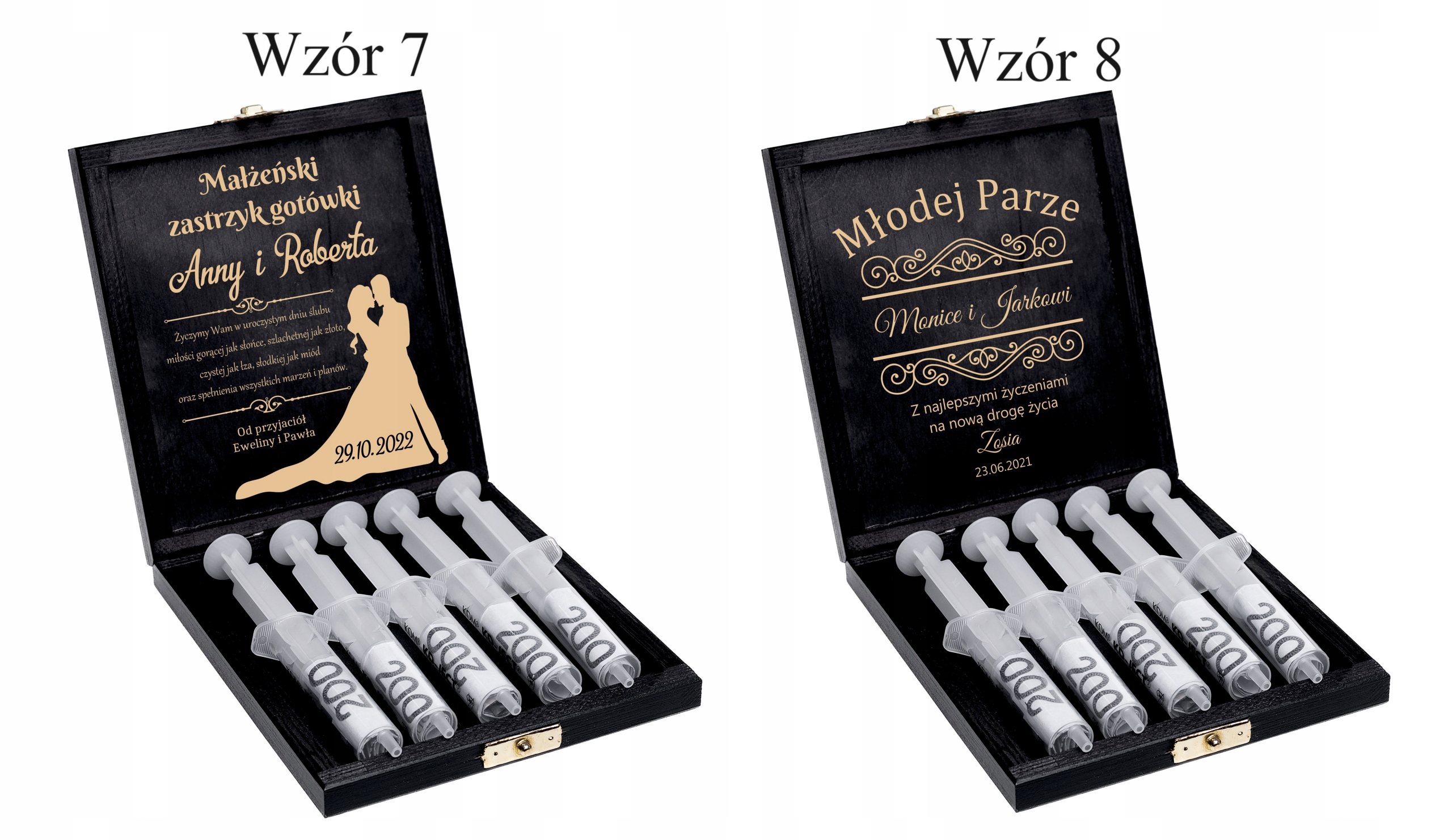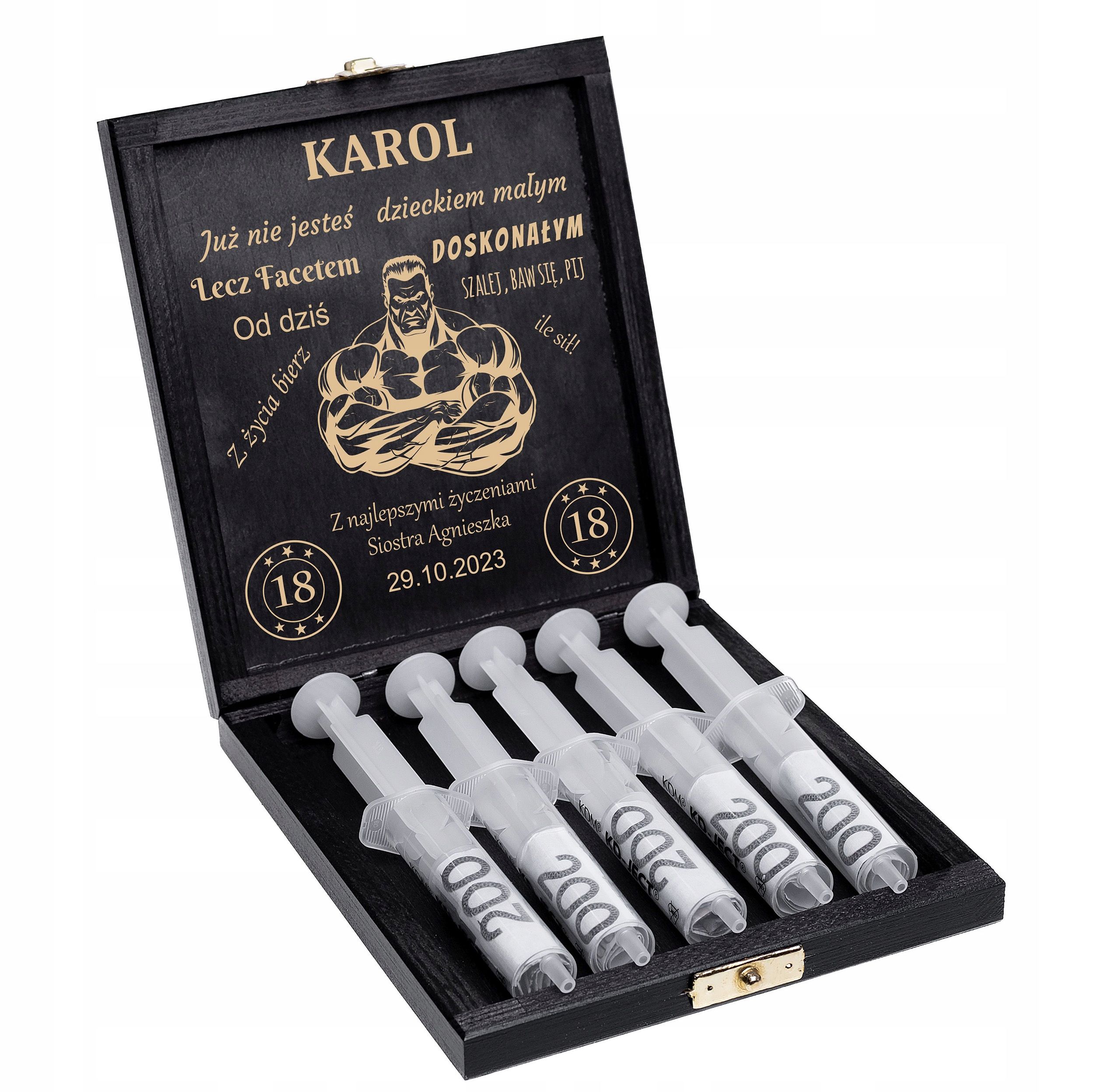 Чтобы оправдать ваши ожидания, мы создали красивую коробочку с принтом и гравировкой для денег. Экологичные материалы и красивая гравировка добавляют атмосферы и характера. В шприцы мы можем свободно вставлять купюры, а гравировка желаний внутри заменит классическую открытку. Такой подарок наверняка удивит каждого. На нашу коробку вы можете заменить скучную пластиковую или картонную упаковку. Шкатулка с Вашим индивидуальным посвящением и пожеланиями станет незабываемым сувениром на долгие годы.
