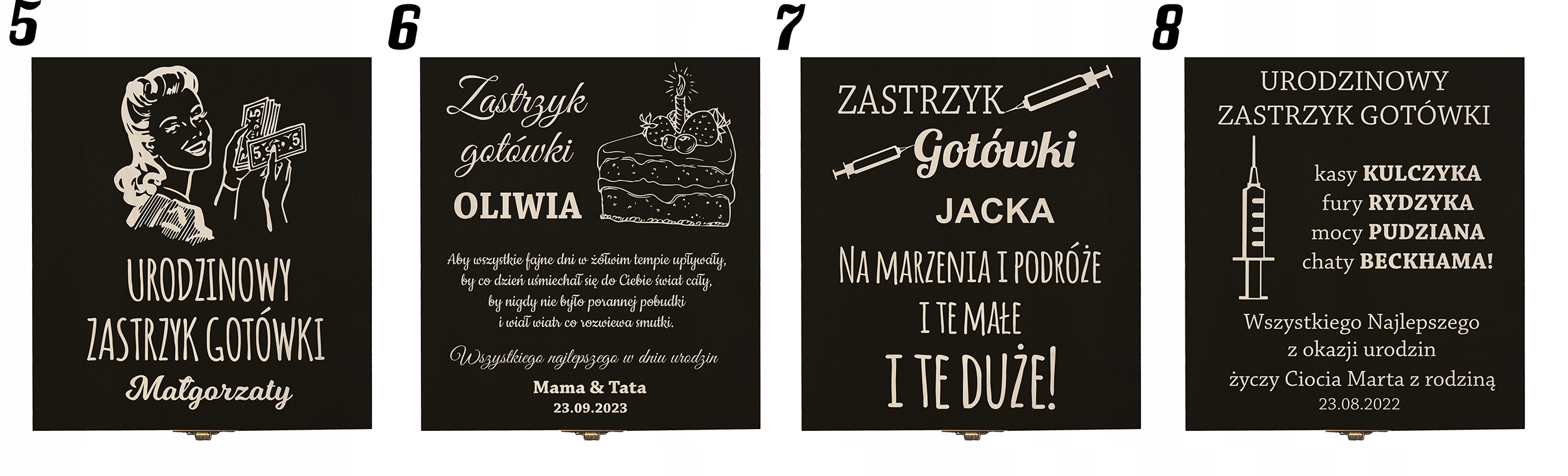 Продукт, представленный нами как «CASH INJECTION», представляет собой идеальное сочетание всех особенностей идеального подарка. Ее богатое содержание непременно станет практичным подарком, а именная шкатулка с гравировкой имени и пожеланий отвечает эстетическим требованиям и станет сувениром на долгие годы.