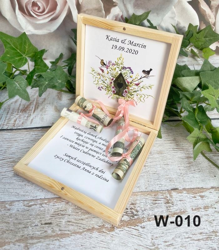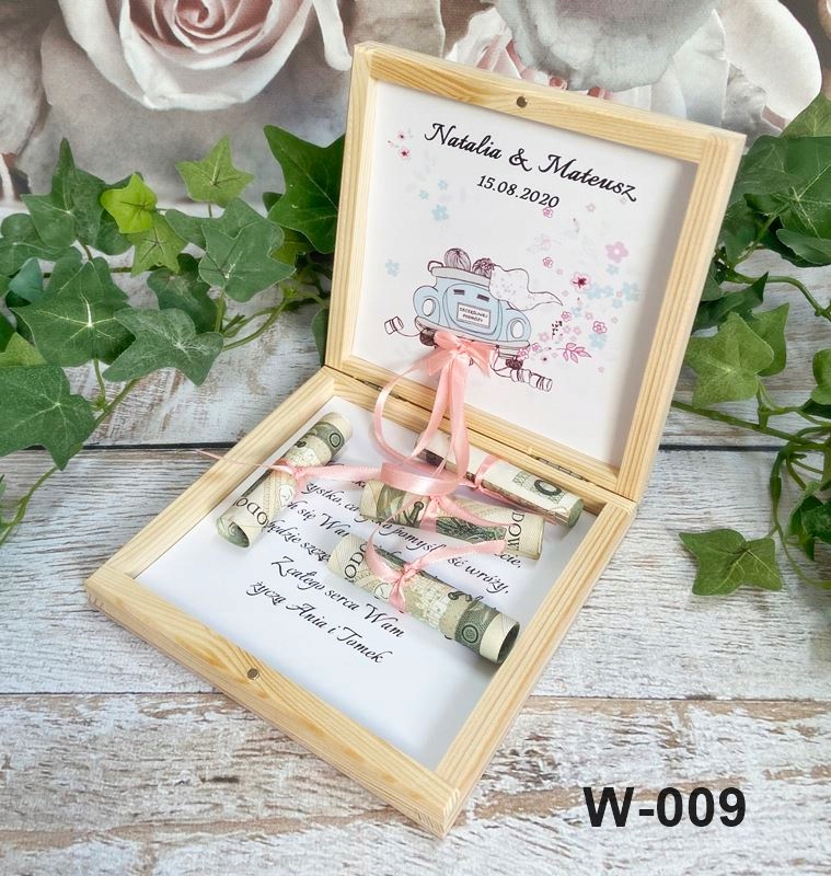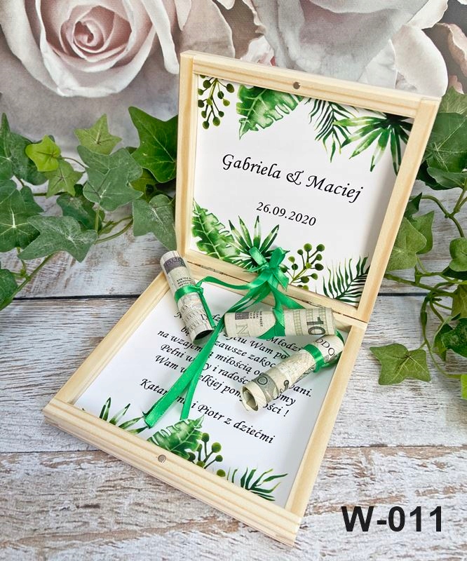 персонализированная внутри, вставки из лент, к которым мы можем прикрепить свернутые банкноты (банкноты не являются комплектацией коробки, это лишь предложение по размещению в коробке)