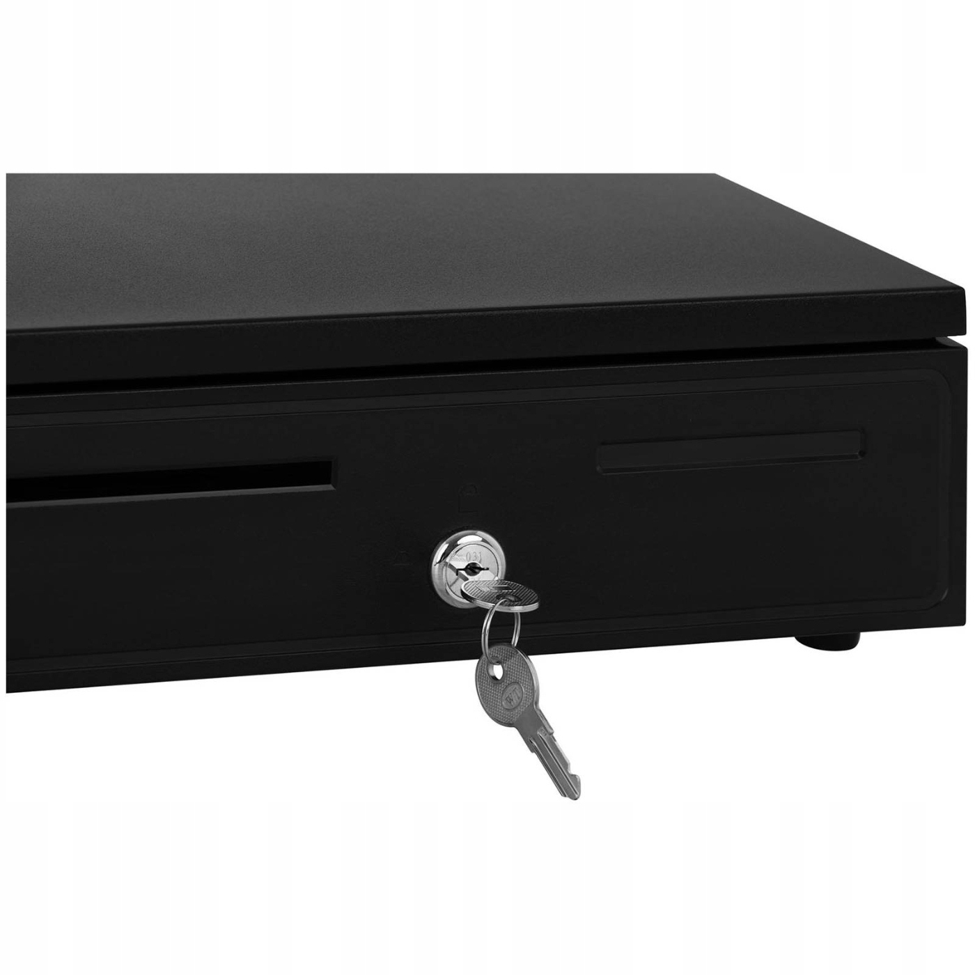 Подключение к кассовому аппарату/компьютеру/принтеру осуществляется кабелем длиной 100 см с разъемом RJ-11. Благодаря этому ящик можно открыть с помощью внешнего устройства и эффективно заблокировать. При необходимости это можно сделать и вручную (2 ключа в комплекте).