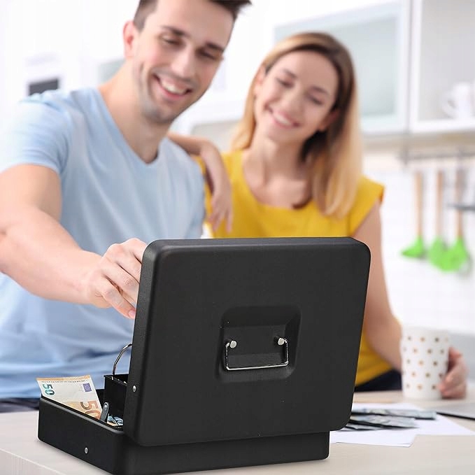 Металлический ящик для денег, купюр и монет. Вместительная коробка
