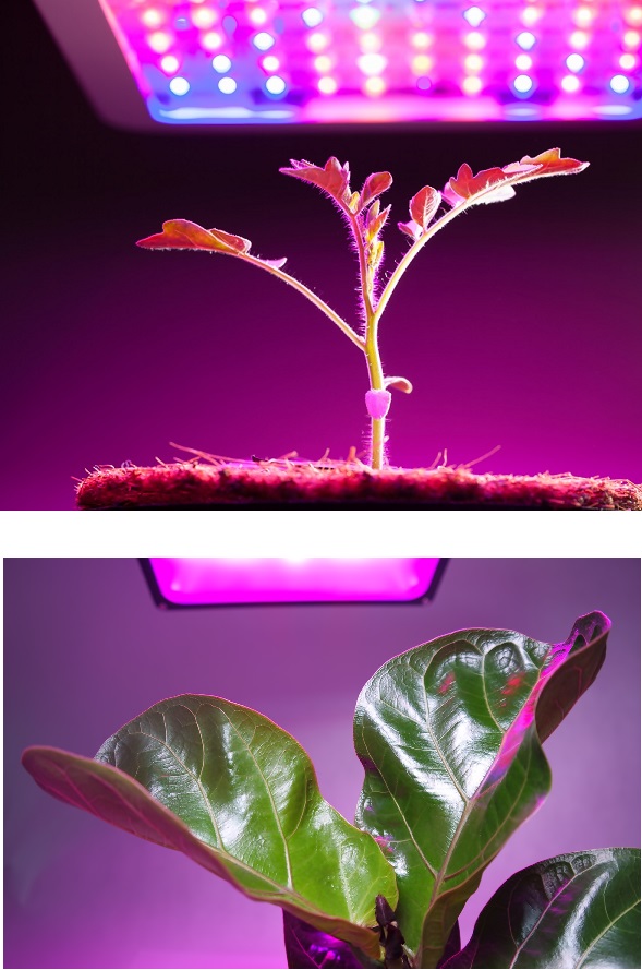 Использование только красного и синего цветов (их длин волн) может сделать невозможным визуальное определение состояния растений, если не знать, как они на самом деле выглядят. Поэтому белый цвет очень важен в повседневном уходе за растениями.