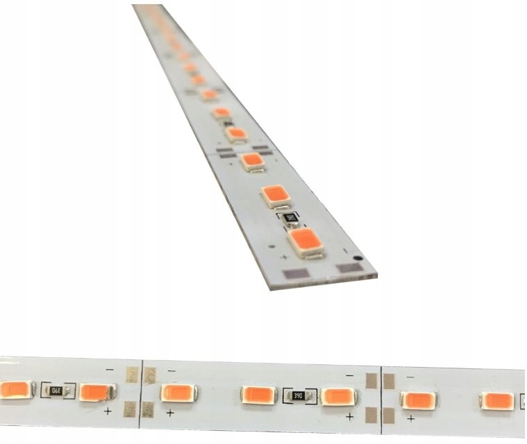 Светодиодная лента GROW 5630 FullSpectrum 72D/m для выращивания и выращивания растений MEiSSA 12V DC IP20 16Вт/м жесткий алюминий, PAR=7, PPFD=26 0,5м