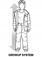 Система GrowUp - изделие растет вместе с ребенком за счет регулировки длины рукавов или штанин.
