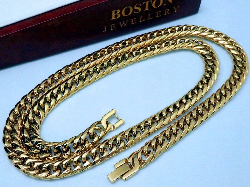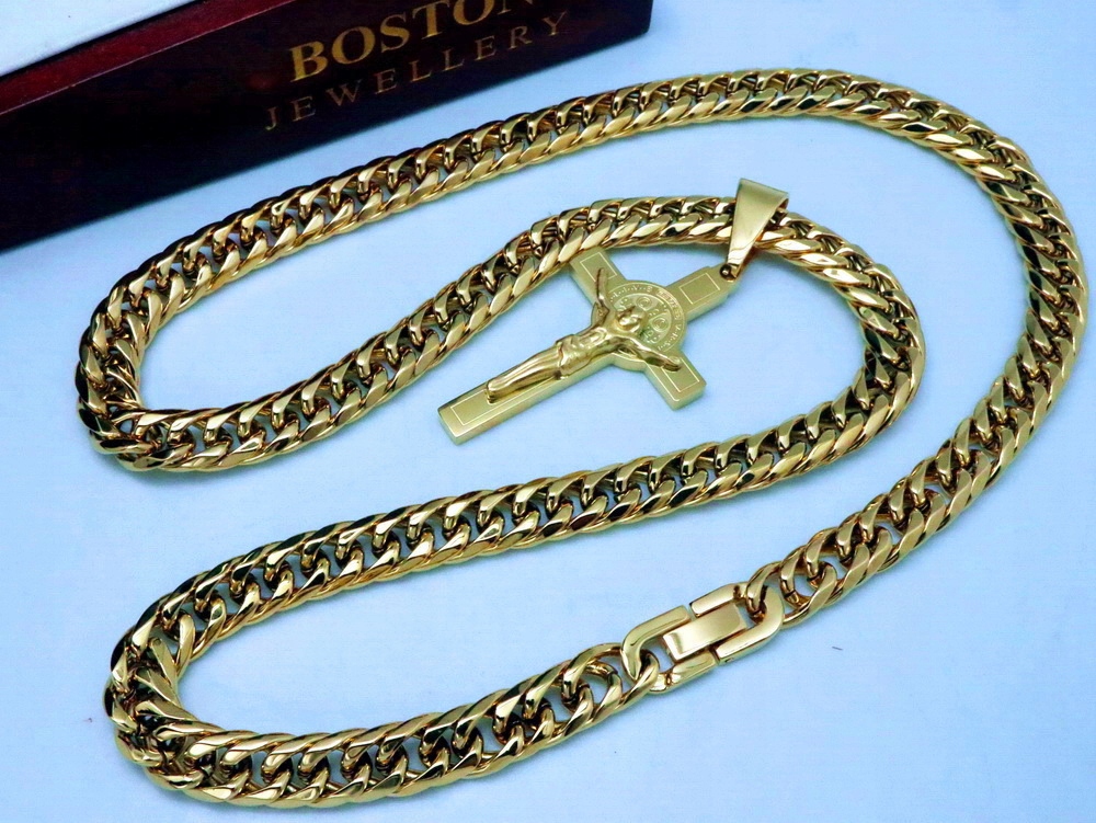 ТОЛСТАЯ ЗОЛОТАЯ ЦЕПЬ С КРЕСТОМ, ХИРУРГИЧЕСКАЯ СТАЛЬ ПРЕМИУМ 9 ММ BOSTON JEWELLERY®