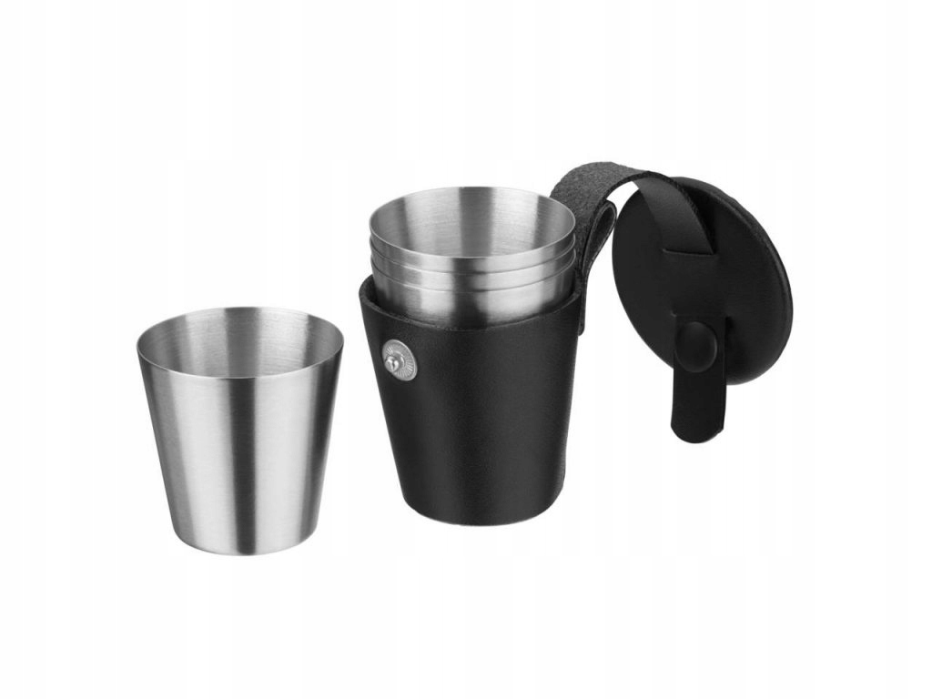 Фляга и стаканы изготовлены из матовой нержавеющей стали Cromargan® 18/10, вся продукция маркируется логотипом производителя.