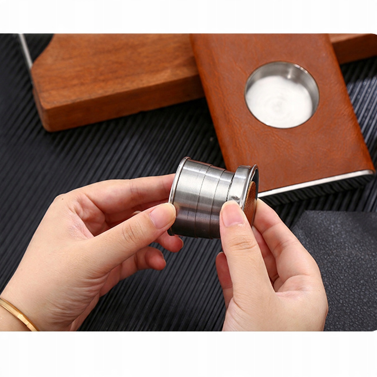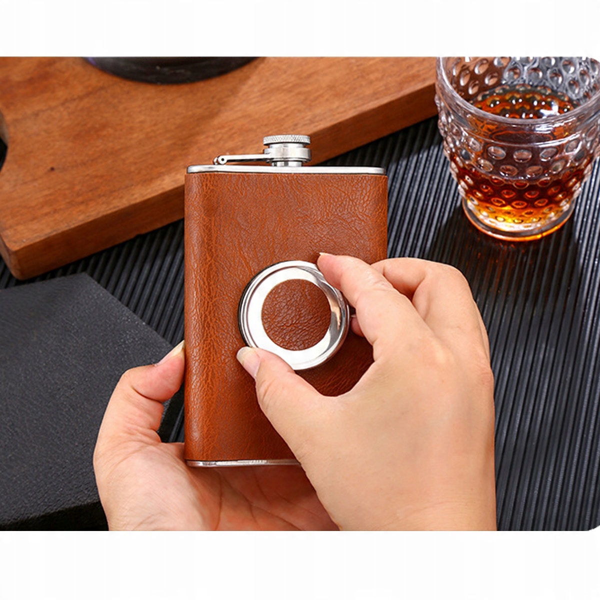Флаг из нержавеющей стали емкостью 8 унций - ок. 250 мл. Крышка соединена с флягой жестким шарниром, что предотвращает случайную потерю. Весь комплект выглядит очень элегантно и функционально. Прекрасный подарок охотнику или рыбаку.