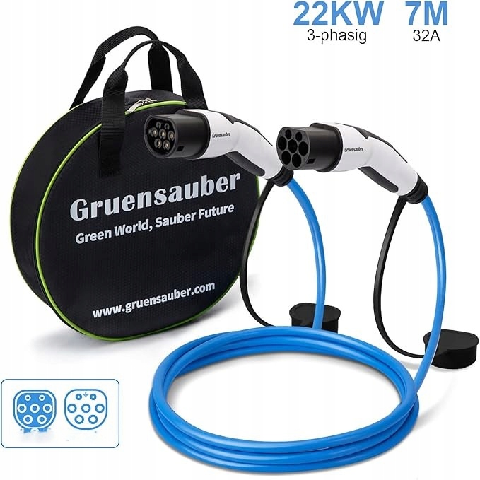 Грансаубера зарядка кабеля Тип 2-22 кВт 7 м 32 3-фазный кабель зарядки для электромобилей 2 эВ/PHEV, зарядка кабеля типа 2 до типа 2 с сумкой, подходит для моделей Y/3/S/, i3, Zoe, Id.3, id.4, e-tron, e-208