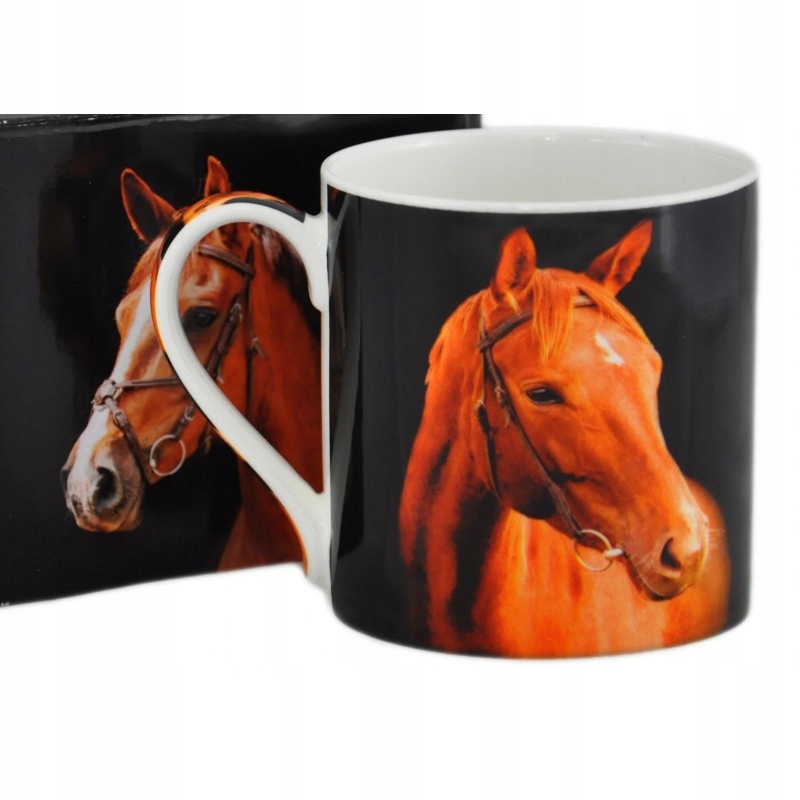 Красивая фарфоровая кружка. Идеально подходит для любителей лошадей. Декоративный мотив – две лошадиные головы. Упакован в картонную коробку.