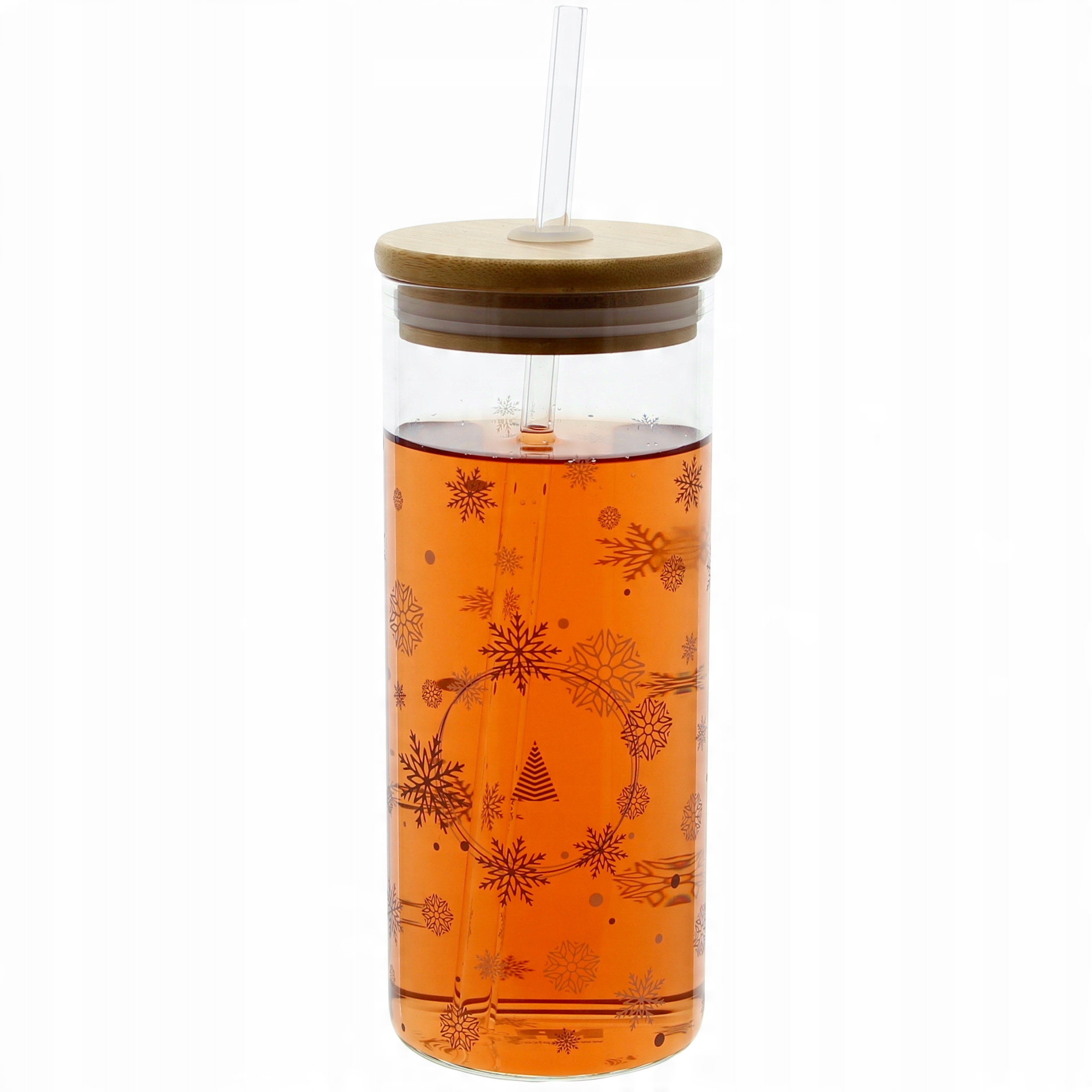 ЭКО СТЕКЛЯННАЯ КРУЖКА С БАМБУКОВОЙ КРЫШКОЙ И СОЛОМОЧКОЙ 600 мл