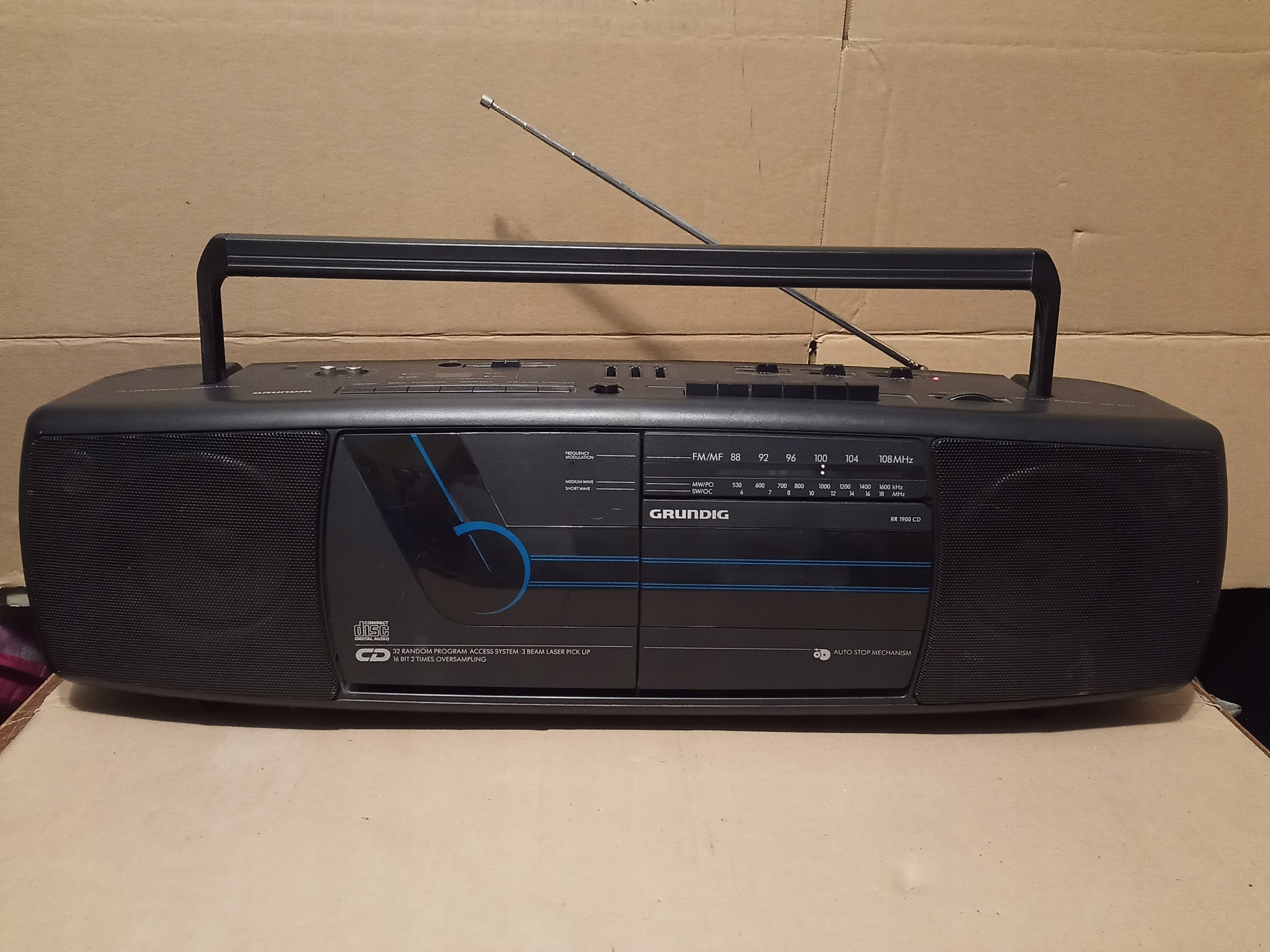 Портативный ретро -магнитофон с начала 90 -х годов: Grundig RR 1900 CD в хорошем внешнем состоянии. Полем (CD не читает диски!, Магнитофон медленно воспроизводит, и звук замедляется!, Радио играет стерео, было бы полезно очистить источник источника!)