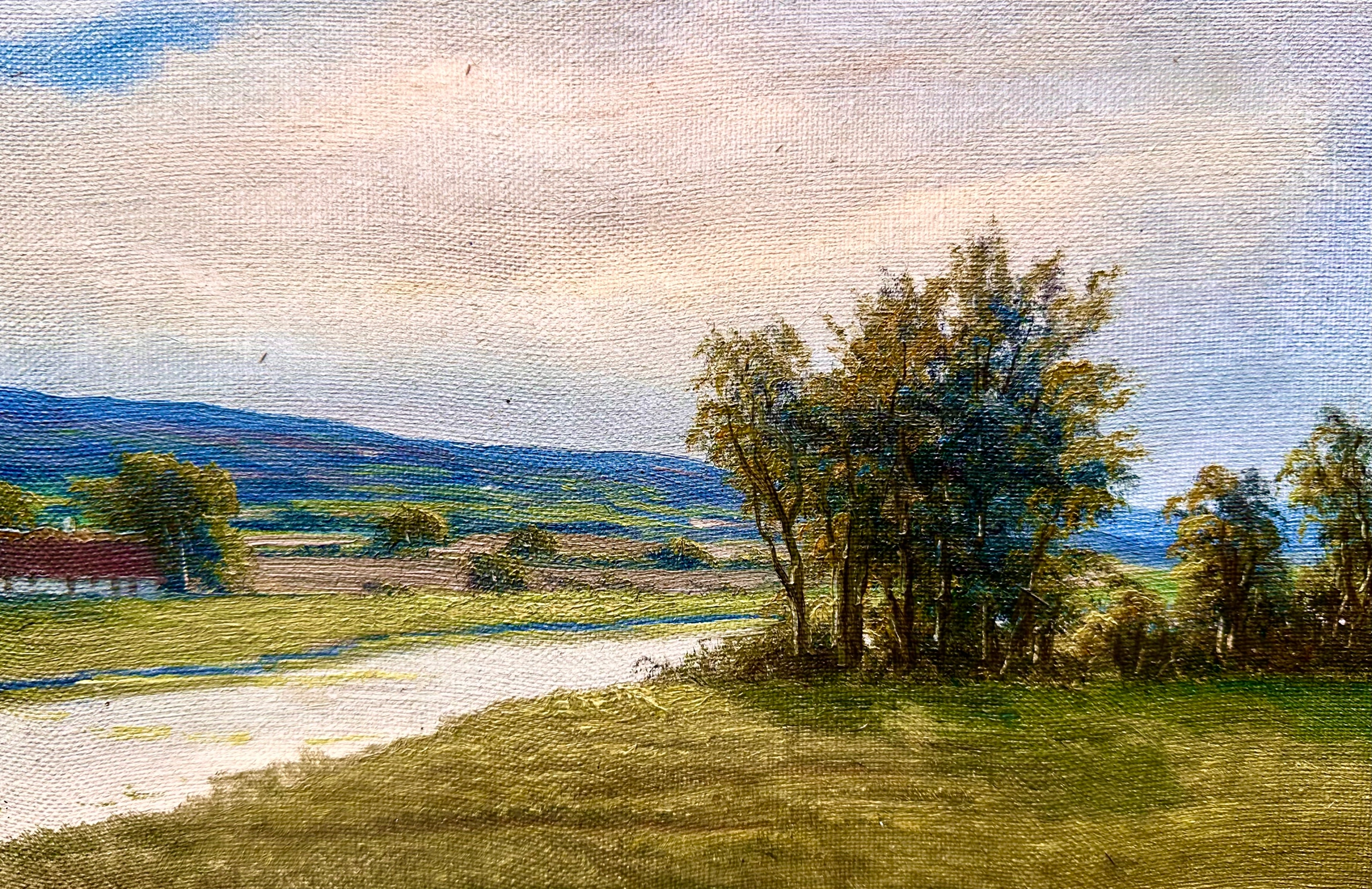 ГРУНОВА ДОРОГА СЕРЕД ДЕРЕВ ТА БУДИНКІВ - ЦІННИЙ СТАРОВИЙ ЖИВОПИС ІМПРЕСІОНІСТІВ