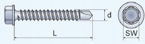 Закаленный. Самосверлящие винты с шестигранной головкой, стандарт DIN 7504K. Используется для крепления листов к легким стальным конструкциям, работам из листового металла и листов между собой (скобы). Идеально подходит для быстрого монтажа, без предварительного сверления.