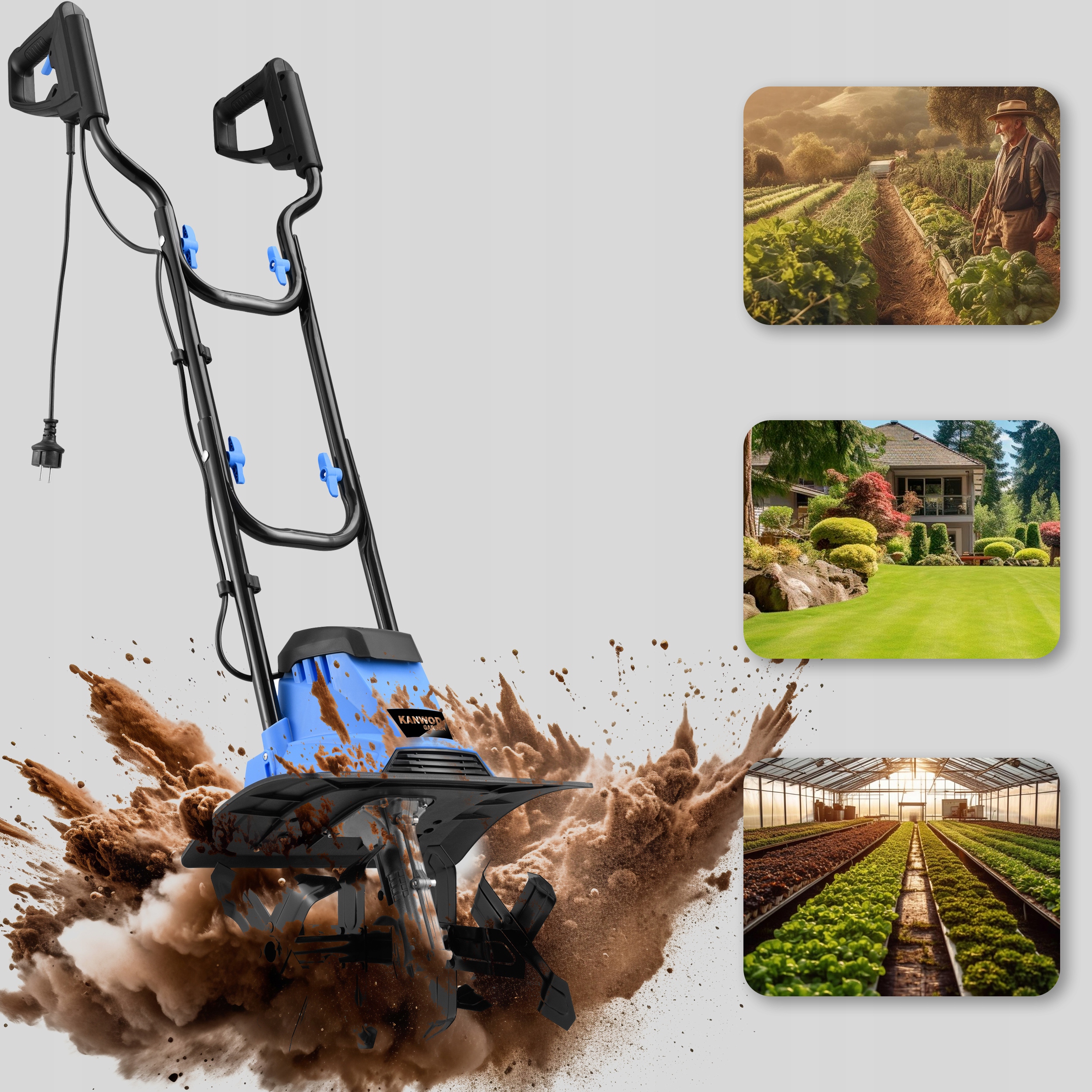 Электрический культиватор мощностью 1500 Вт — это инструмент, обеспечивающий эффективную и быструю подготовку почвы к посадке, позволяющий тщательно рыхлить и аэрировать почву. почва. Благодаря своей высокой мощности это устройство способно справиться даже с более твердой почвой, что делает его идеальным решением для средних и больших садов.