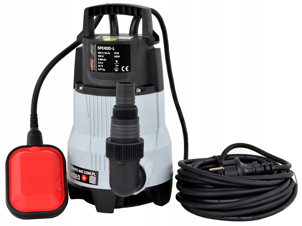 Он оснащен поплавком, который предназначен для автоматического включения и выключается, когда уровень воды поднимается или падает. Он оснащен очень эффективным современным двигателем мощностью 400 Вт, обеспечивающим производительность до 9000 литров в час. Максимальная высота подъема — 5,5 метра, максимальная рабочая глубина — 7 метров.