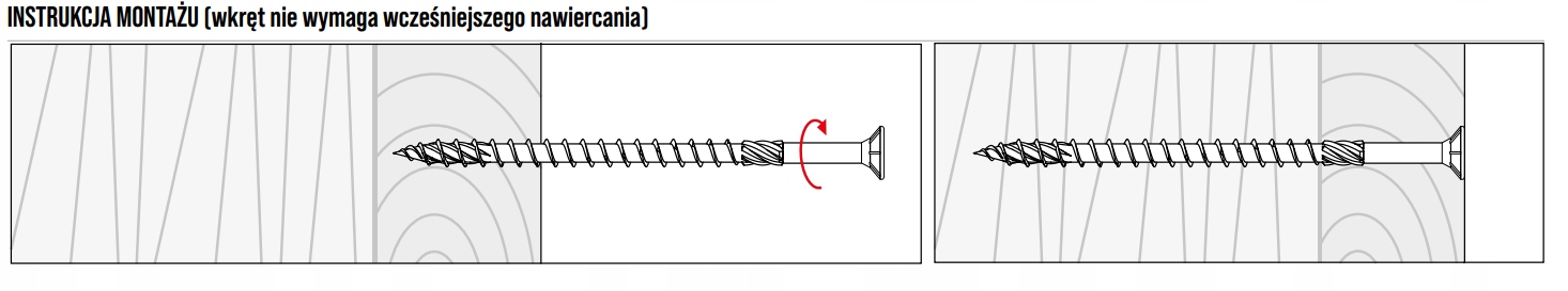- Винты были изготовлены в соответствии со стандартом PN-EN 14592-2008 Этот европейский стандарт устанавливает требования и методы испытаний в отношении материалов, геометрии, прочность, жесткость и долговечность (т.е. защита от коррозии) соединителей, применяемых в несущих деревянных конструкциях