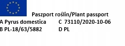 - В соответствии с Регламентом (ЕС) 2016/2031 Европейского Парламента и Совета от 26 октября 2016 г. о мерах по защите от вредителей растений, Подкарпатский воеводский инспектор по контролю за здоровьем растений и семеноводству удостоверяет, что мы иметь знания, необходимые для проведения оценок с целью выдачи паспортов растений, сертификат № ОРЗ/37/2020, поэтому к каждому растению выдается (прикрепляется) паспорт растения