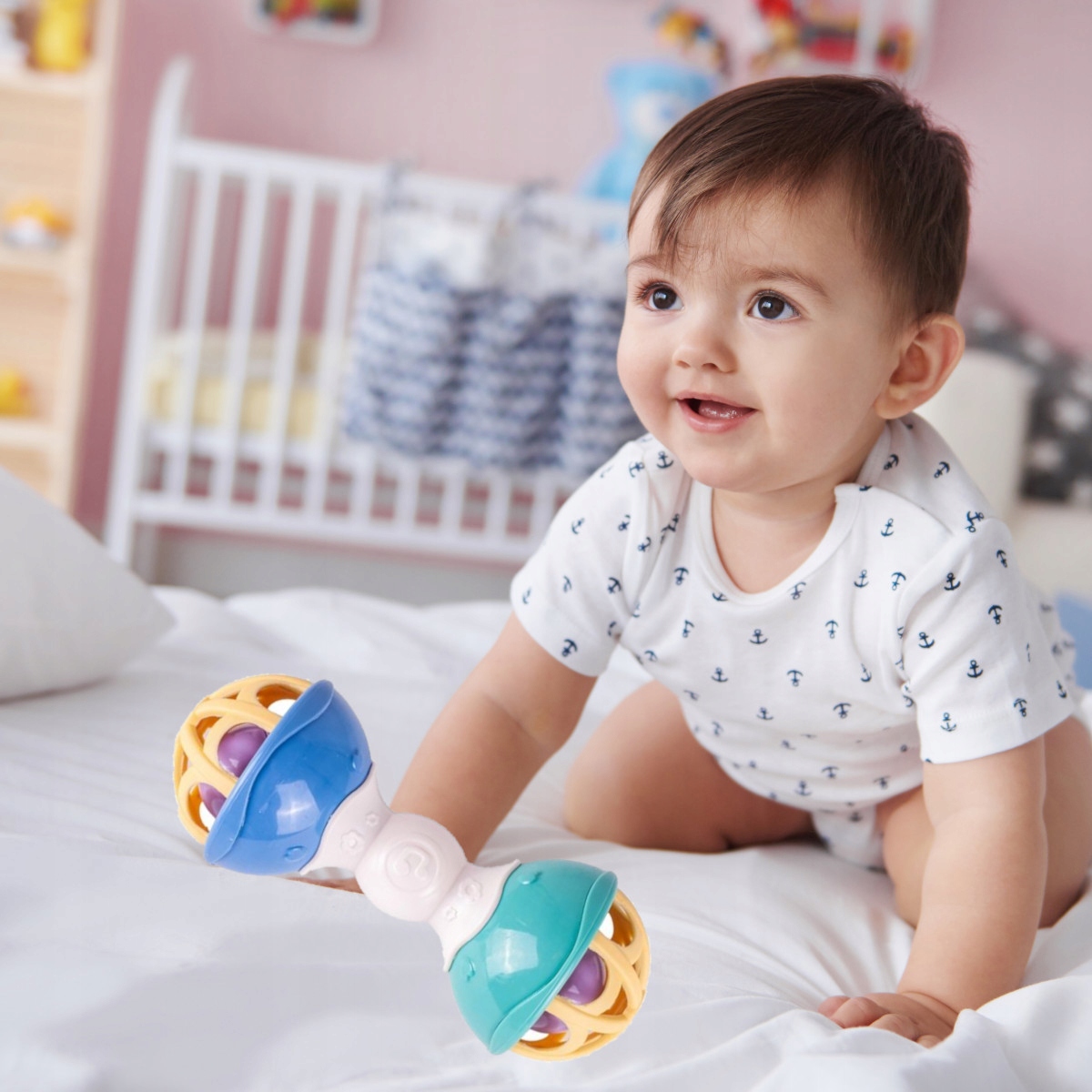 Набор состоит из 6 штук, что заставит этих гремучих в разных местах: дома, в коляске, в сумке, так что у ребенка всегда есть чем сыграть.