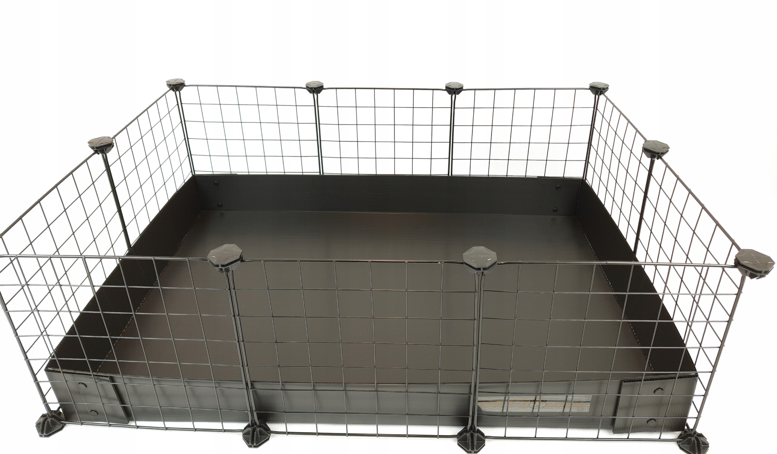 Модульная конструкция Клетка изготовлена из легкого, но очень прочного пластика. Кроме того, материал устойчив к моче животных.