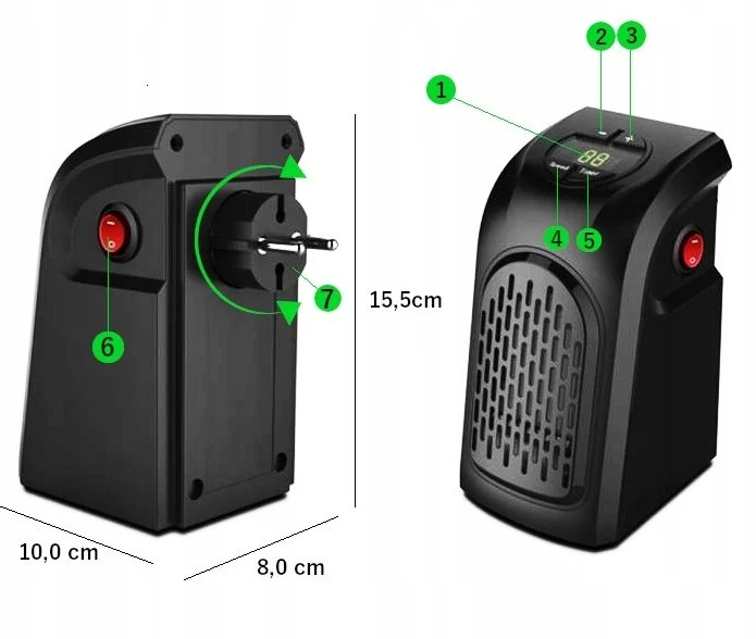Несмотря на небольшой размер, тепловентилятор отлично обогреет помещение. Легкая конструкция позволяет свободно переносить его и размещать в любом месте, где требуется дополнительный обогрев.