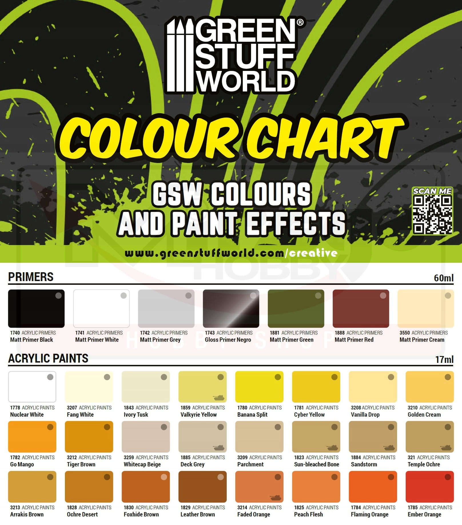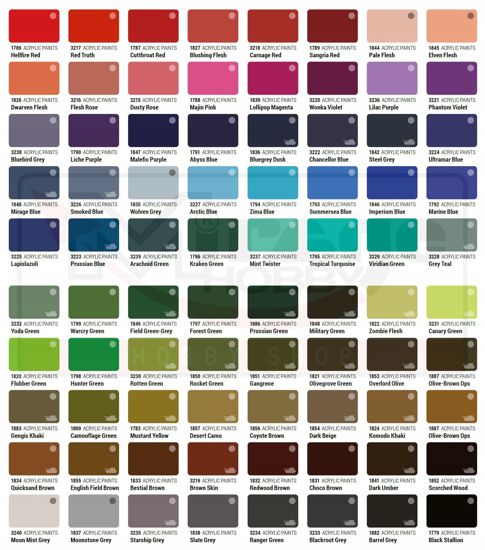 Благодаря полному спектру основных тонов и оттенков, необходимых в военных играх, транспортных средствах, миниатюрах и диораме, а также уникальным цветам, доступным только для GSW, эта серия направлена на то, чтобы все, что нужно хобби для своих проектов.