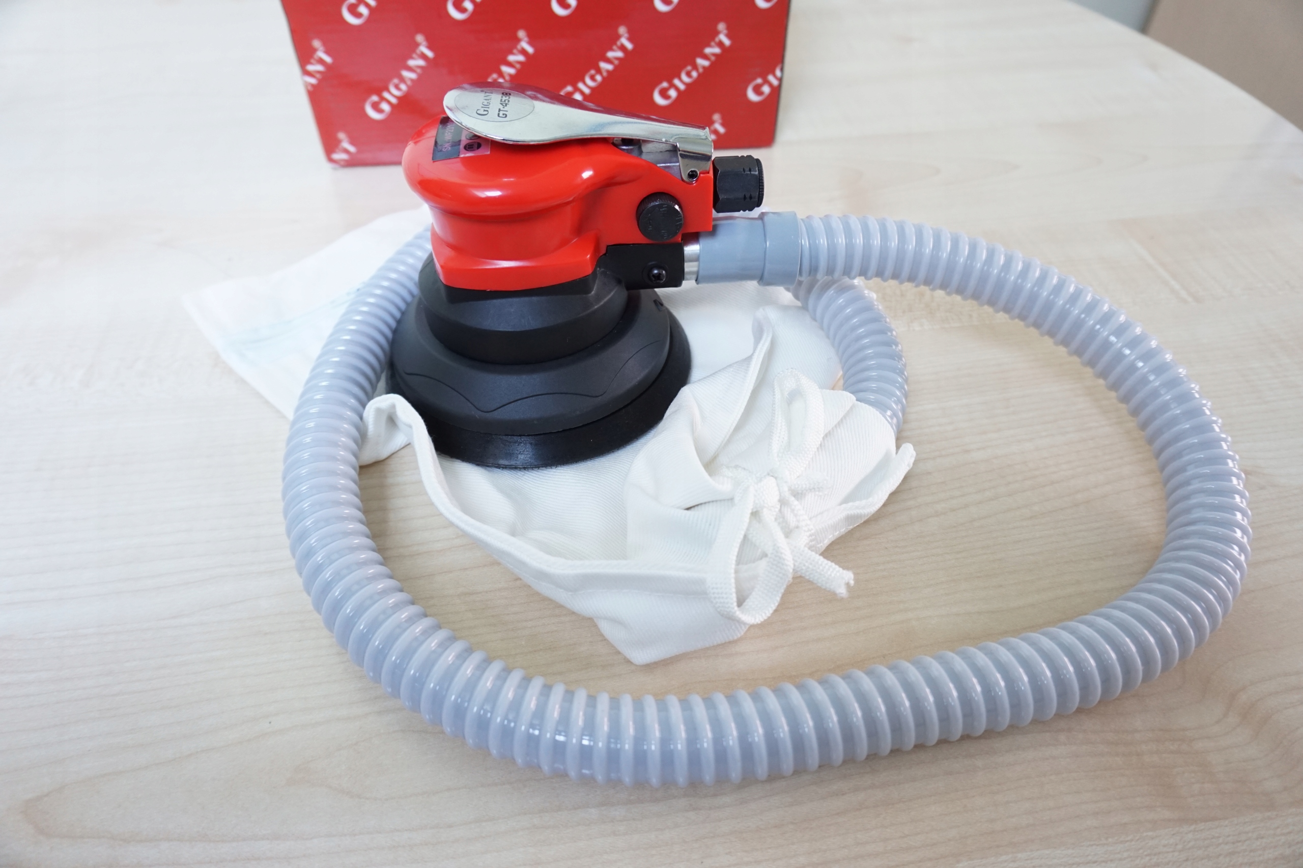 Орбитальная шлифовальная машина GT-4538 оснащена центральной системой пылеудаления, а также включает в себя шланг и пылесборник. Это позволяет работать в чистых условиях и экономит время, затрачиваемое на уборку пыли после шлифовки. Вместо мешка можно прикрепить пылесос.