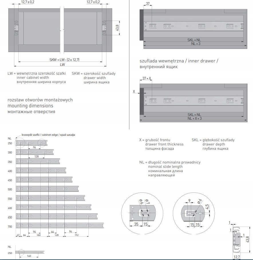 - Ширина ящика не должна превышать руководства по номинальной длине