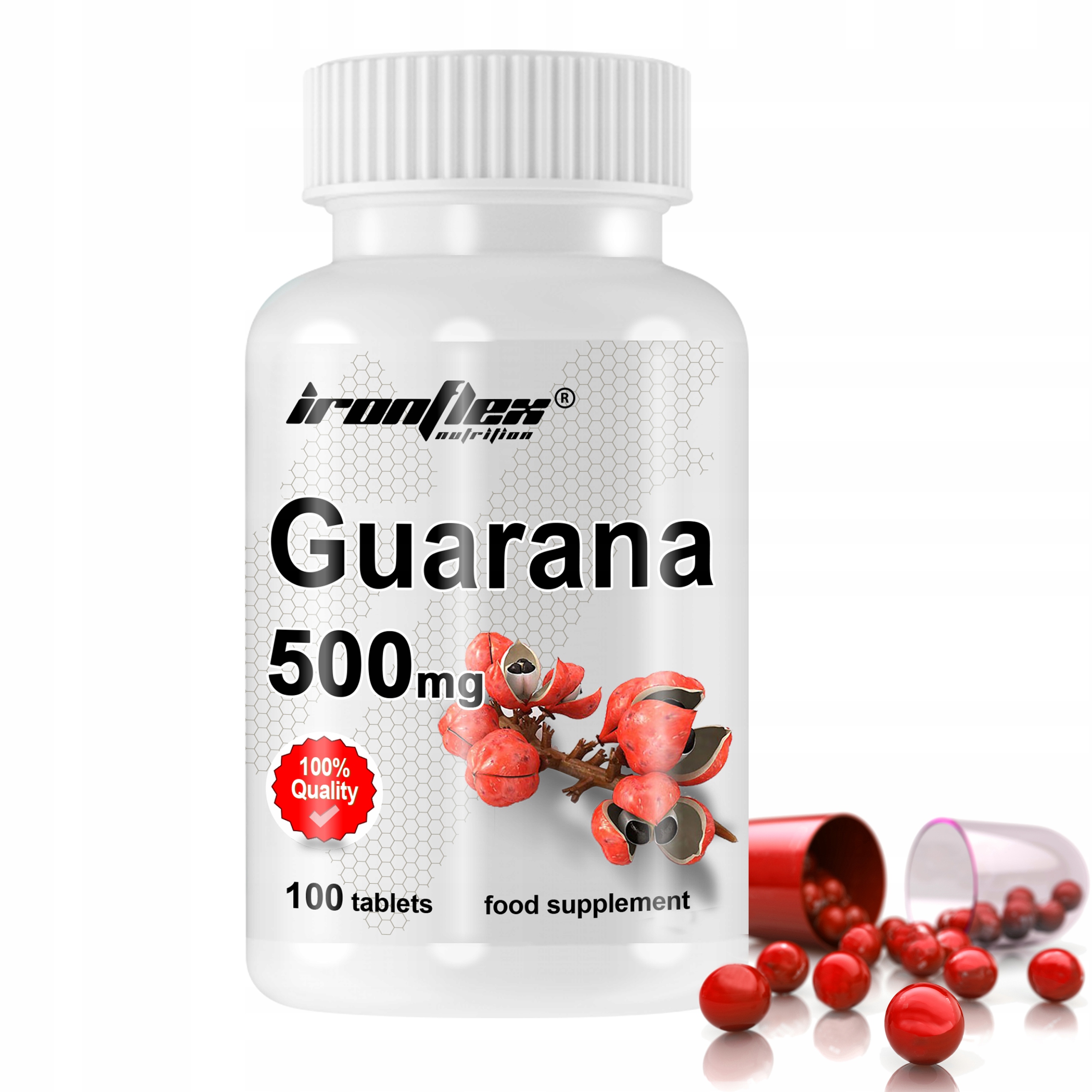 IRONFLEX ГУАРАНА 500мг - пищевая добавка, содержащая высокостимулирующий экстракт семян гуараны, женьшеня и таурина.