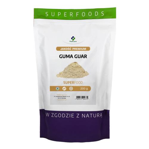 Гуаровая камедь чрезвычайно богат клетчаткой. Пищевая клетчатка необходима для поддержания здоровья кишечника, она служит пищей для полезных бактерий в кишечнике и увеличивает объем стула. Таким образом, он предотвращает запоры и диарею. Кроме того, гуаровая камедь может действовать как пребиотик, питая полезные бактерии в кишечнике и уменьшая рост вредных бактерий в кишечнике.