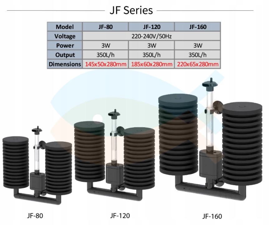 Внутренний фильтр JF-120 оснащен двумя фильтрующими губками, обеспечивающими превосходную механическую очистку воды. Фильтр характеризуется высокой производительностью 350л/ч, при очень низком энергопотреблении - всего 3Вт.