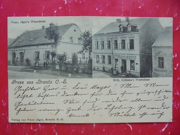 GŁUBCZYCE LEOBSCHUTZ BRANICE BRANITZ WARENHAUS FRANZ JAGERS WILHELM SHIMKES ИЗ ОБРАЩЕНИЯ 20.02.1908 СОСТОЯНИЕ - Очень хорошее состояние КРАСИВАЯ ОТКРЫТКА ИЗ ЭПОХИ, ВОЗМОЖНОСТЬ ОПЛАТЫ ТРАДИЦИОННЫМ ПЕРЕВОДОМ BANK SLĄSKI