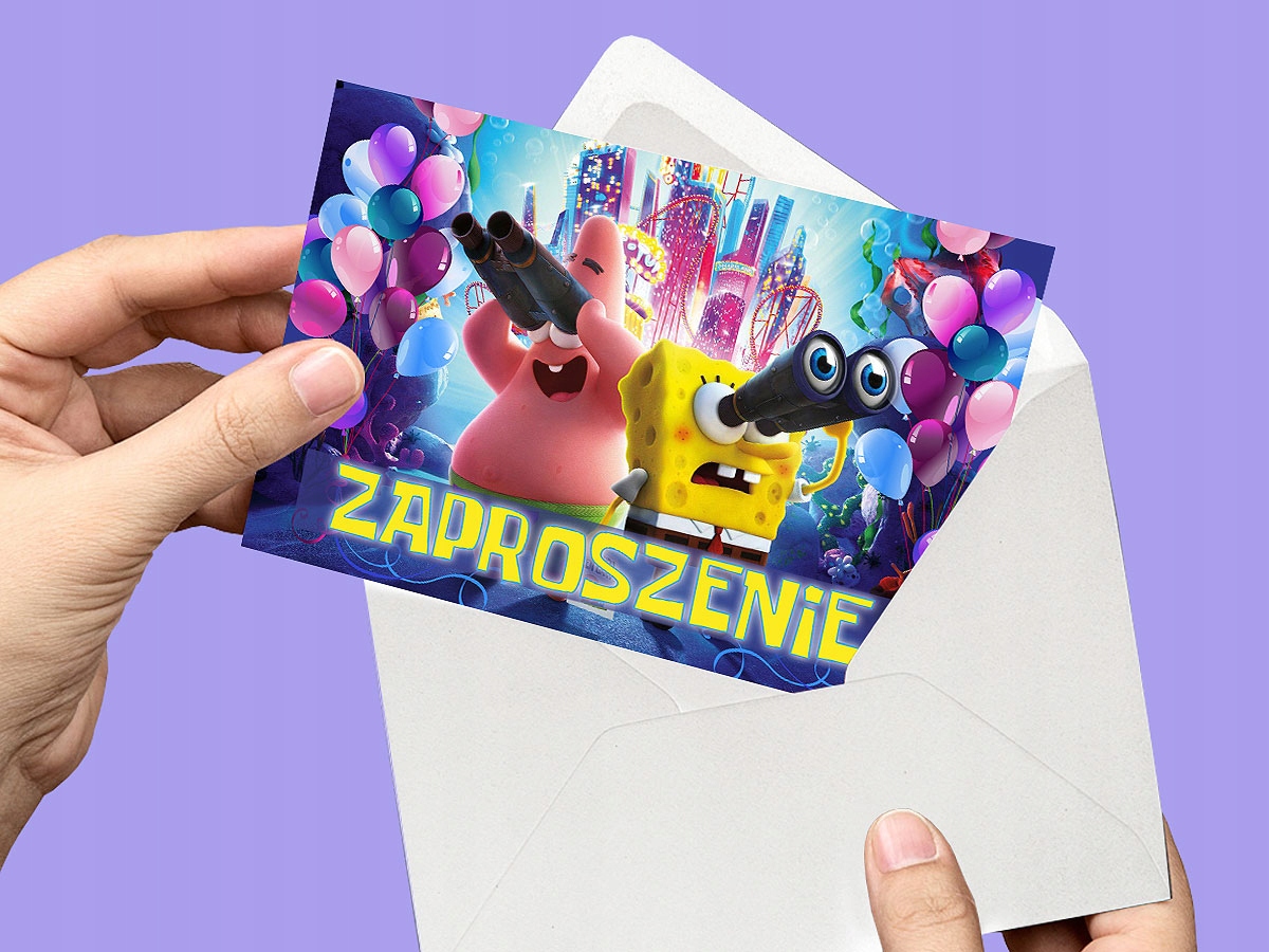 ДЕТСКОЕ ПРИГЛАШЕНИЕ НА ДЕНЬ РОЖДЕНИЯ ГУБКИ БОБА + БЕСПЛАТНЫЙ КОНВЕРТ