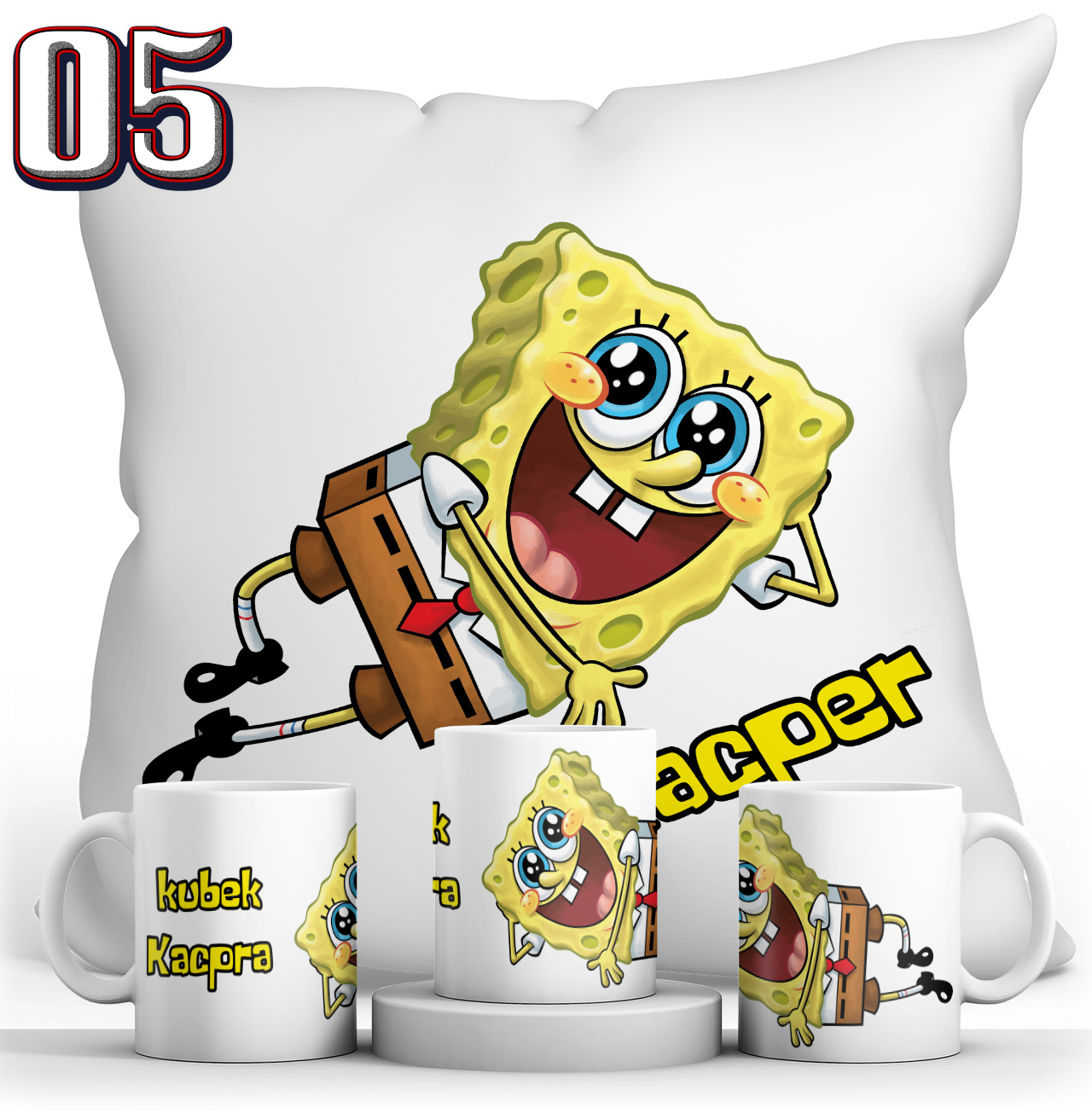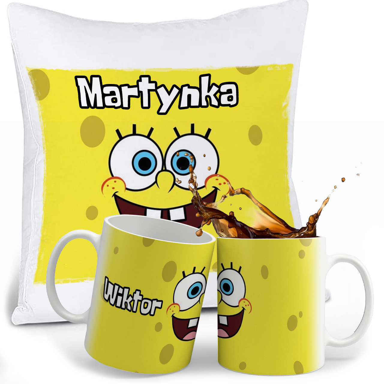 КРУЖКА ГУБКА БОБ + ПОДУШКА + НАБОР ИМЕНИ