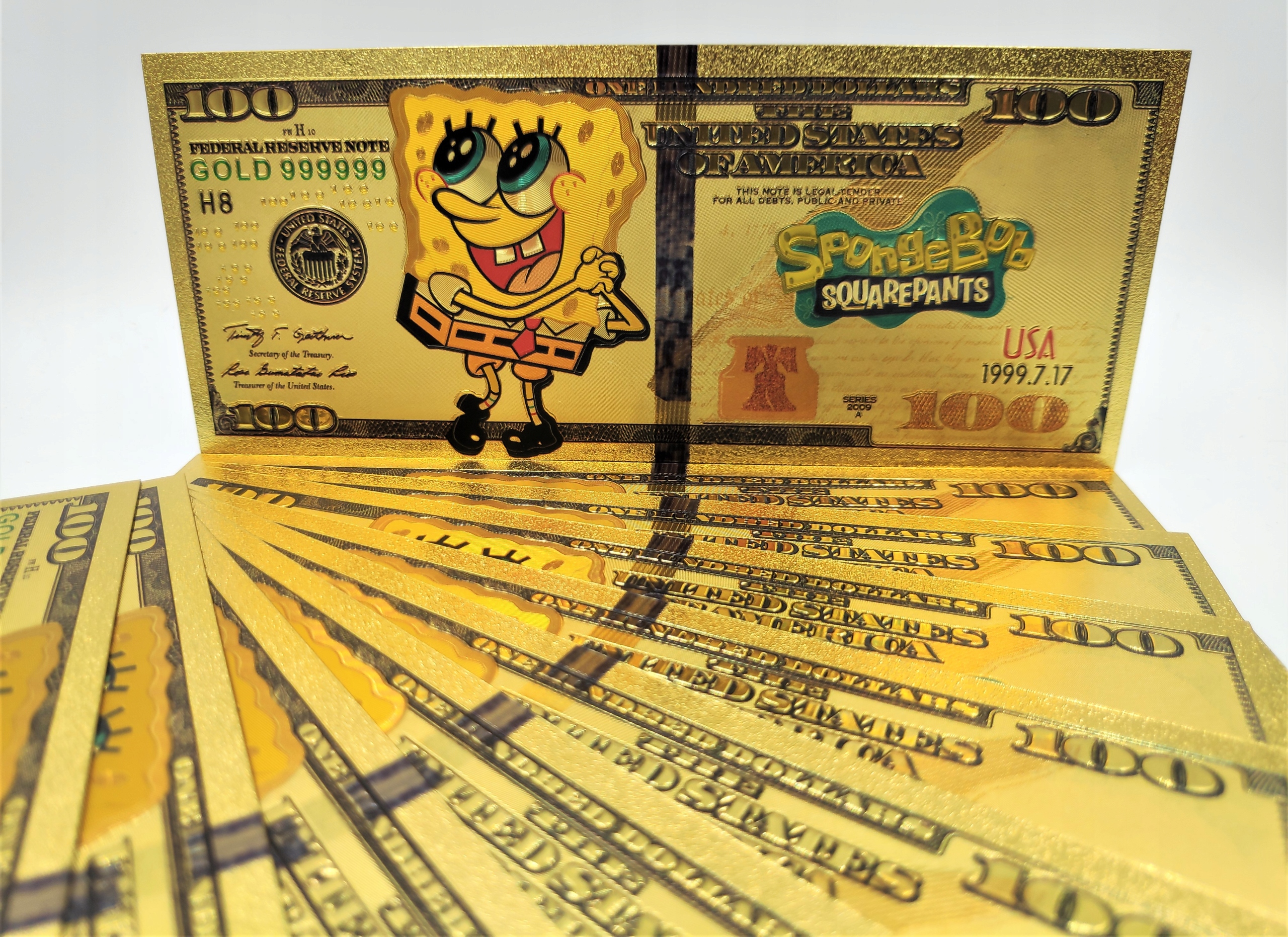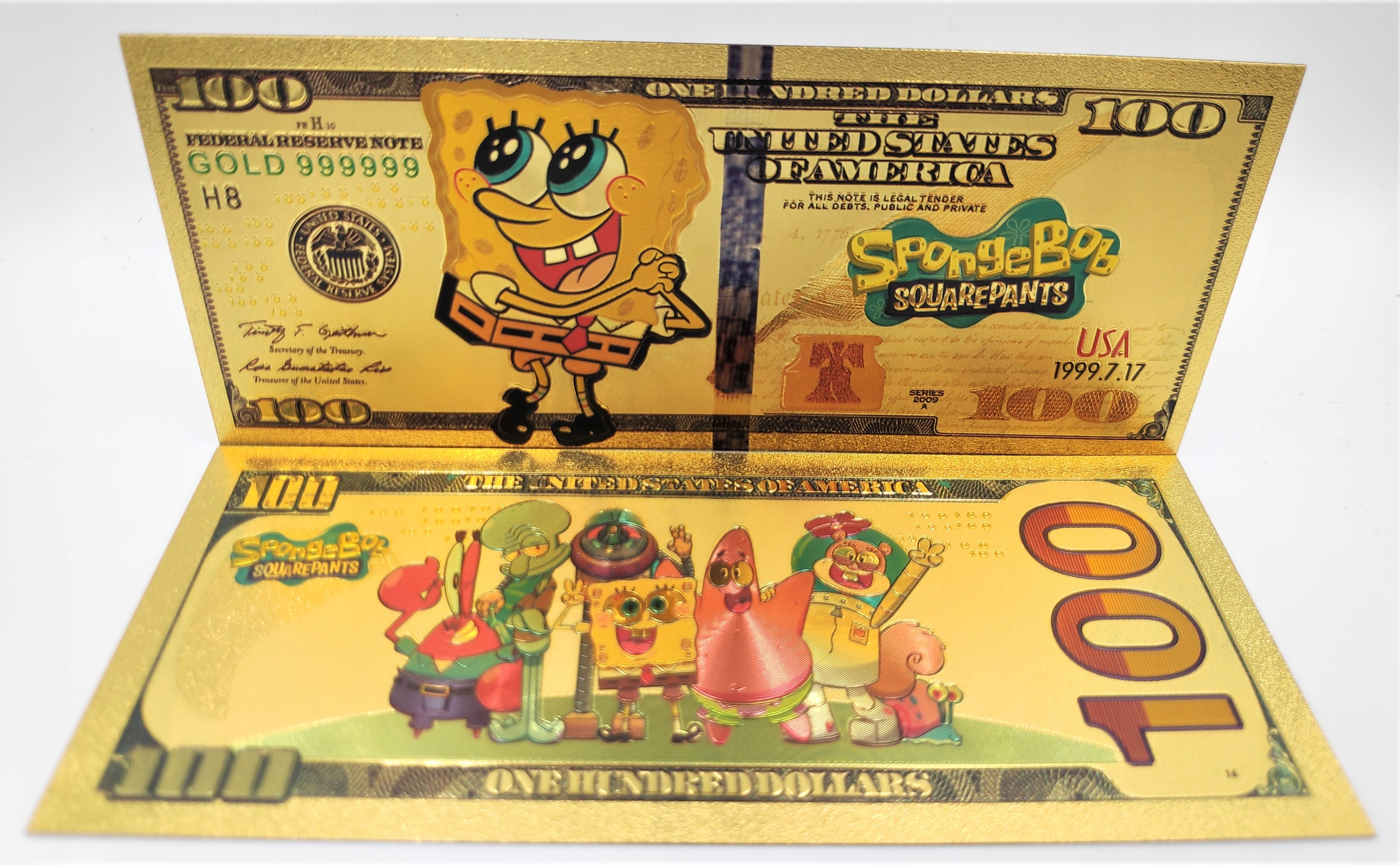 Губка Боб позолочена 100-доларова банкнота
