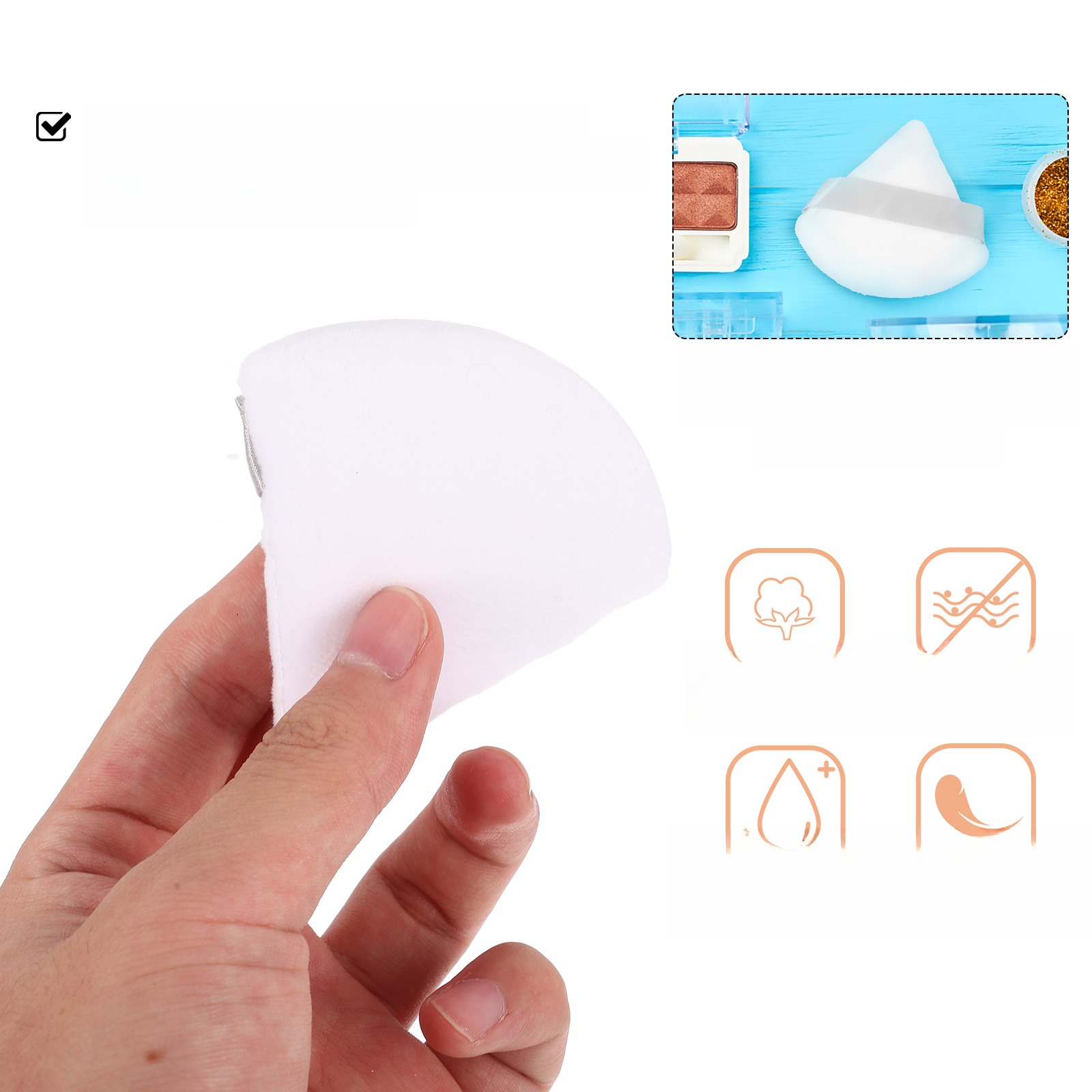 ✅Этот предмет представляет собой пуховку для макияжа, изготовленную из высококачественного хлопкового материала для длительного использования. Простой дизайн треугольной формы, простой в использовании. Ощущение прикосновения, более удобное в использовании. Хороший помощник, который поможет вам с макияжем.