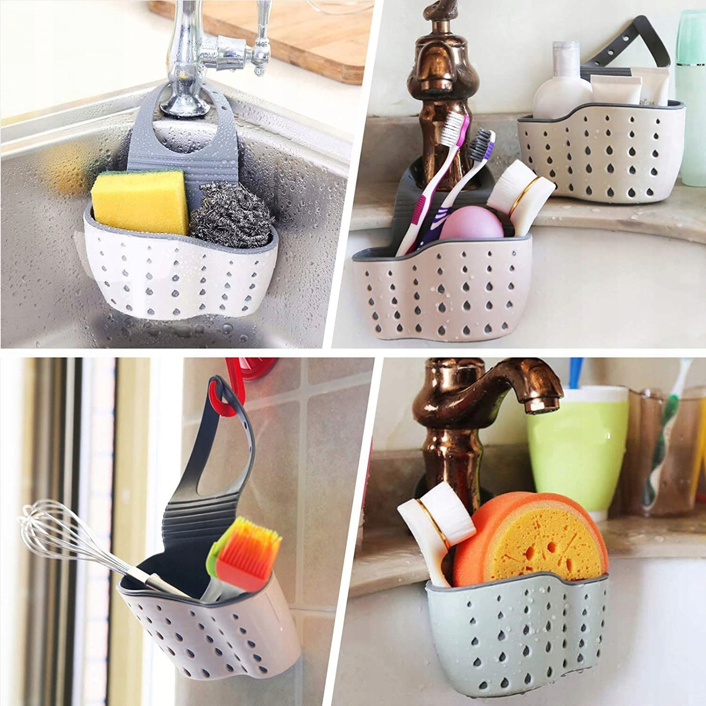 ➡️ Качественный кухонный органайзер для мойки, благодаря которому вы легко сможете поддерживать порядок на кухне и держать под рукой необходимые принадлежности, такие как губки, щетки, провода. Есть регулировка для подвешивания на кран. Внизу имеются отверстия для слива лишней воды.