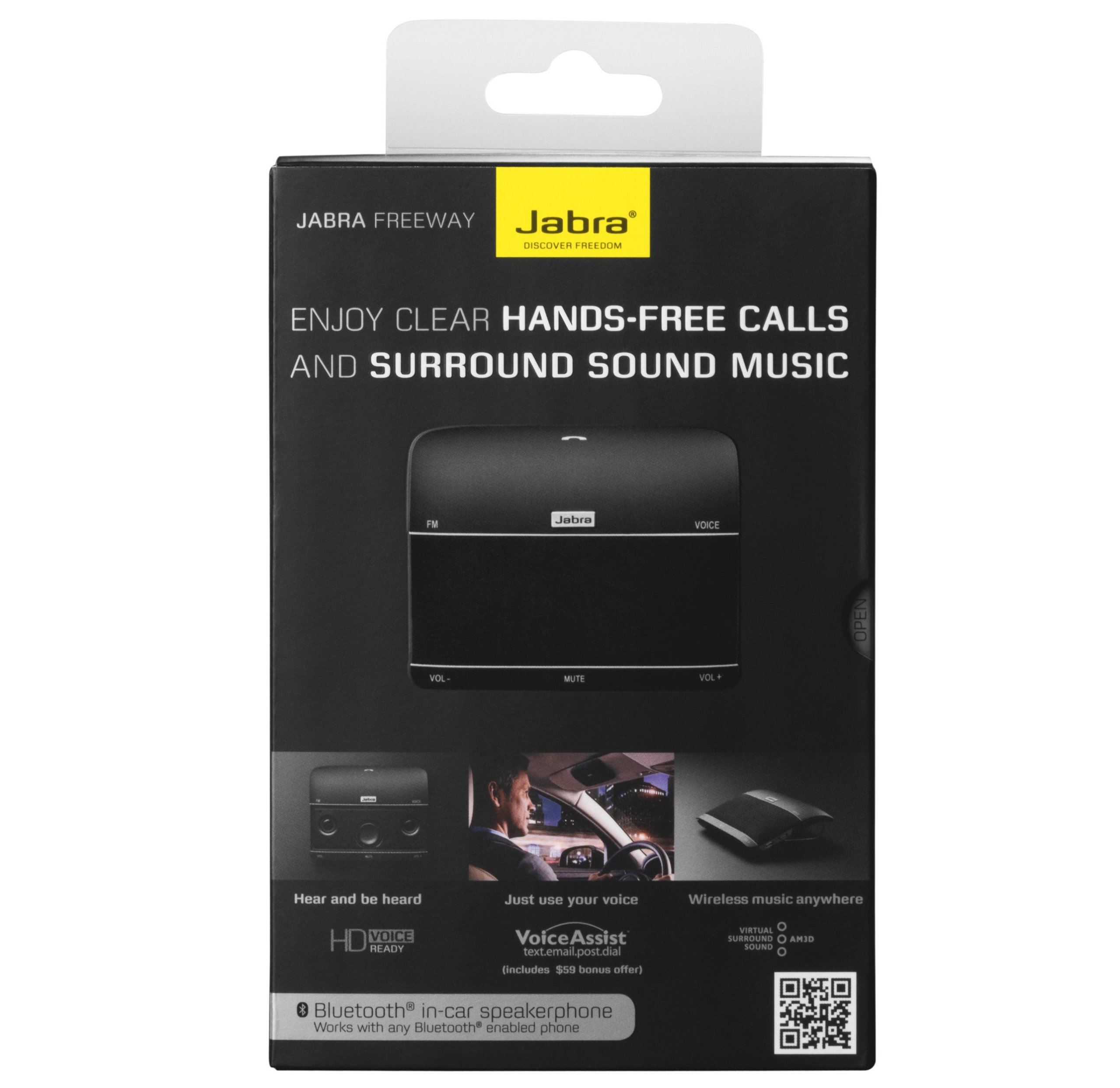 Jabra Freeway — один из первых спикерфонов, оснащенных 3 динамиками и обеспечивающими виртуальный объемный звук.