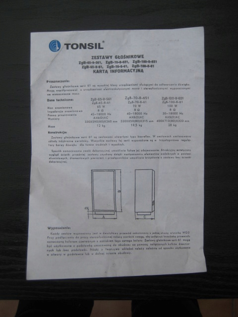 Новый, с одним владельцем. Очень хорошее, почти идеальное состояние. Никаких царапин, крупных царапин на обивке или чего-то подобного нет. Колонки используются редко. К сожалению, подвес динамика не выдержал испытания временем. Вот почему существует совершенно новая подвеска как для низкочастотных, так и для среднечастотных динамиков. Сделал это не кто-нибудь, не юнцы из материнской компании, а "старый" старик, бывший инженер, работавший в Procenet в 1966-1989 годах, ныне проживающий в Познани, Смочовице.