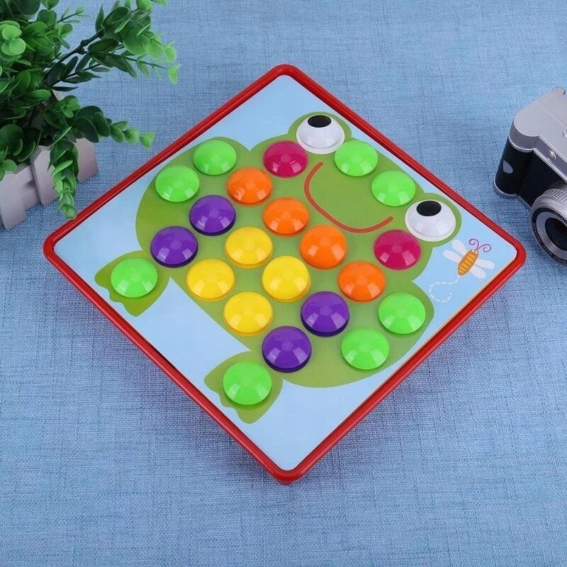 Игра с мозаикой для детей, обучающая игрушка, подарок 2-летней девочке и мальчику. Сначала нажмите цветную кнопку на висящей мозаичной доске, затем ребенок может создать на подвесной доске уникальное яркое изображение в мультяшном стиле в соответствии с вашими творческими способностями и воображением. Совершенствуйте дизайнерские навыки вашего ребенка!