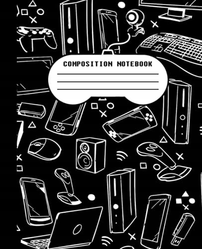 Блокнот для создания видеоигр с широкой линейкой: блокнот для игровых композиций с темой игрового контроллера, идеальная идея подарка для мальчиков, детей, девочек, подростков, ... x 9,25 100 страниц, черный блокнот для композиций