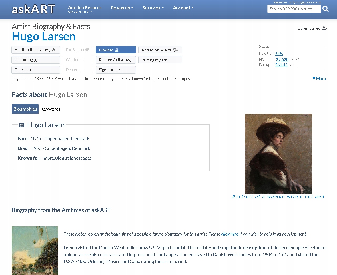 - Художник указан в списке все порталы, посвященные произведениям искусства, в том числе findartinfo, artprice, arcadja и др.