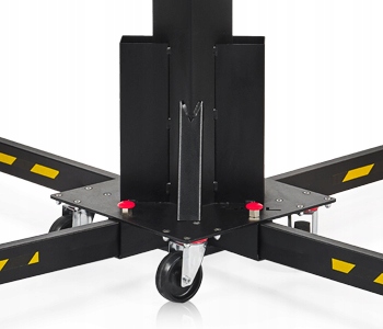 Базовый оснащен четырьмя прочными крутящими колесами, которые облегчают передачу и транспорт. Колеса прикреплены к основанию с металлической пластиной с 4 точками монтажа, чтобы гарантировать безопасное крепление, даже при перемещении башни на неровной поверхности. По одной технике, экономия времени и повышение производительности