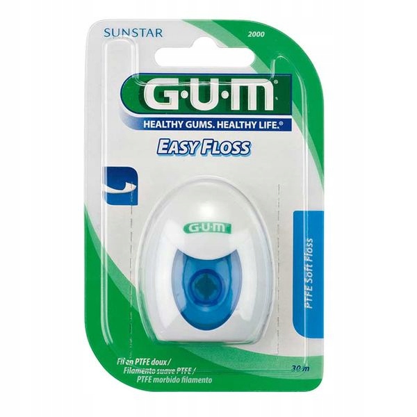 GUM Easy Floss – зубная нить последнего поколения. Идеально подходит для людей с узкими межзубными промежутками. Изготовленный из специального материала ПТФЭ (политетрафторэтилен), он легко скользит между зубами и под линией десен, эффективно удаляя зубной налет. Изготовлен из цельного волокна, что делает его прочным и не изнашивается. В то же время он имеет мягкую поверхность, щадящую десны. Даже самые продвинутые зубные щетки не смогут тщательно очистить межзубные промежутки. Остатки пищи, осевшие возле зуба, разлагаются, выделяя кислоты, повреждающие пародонт. Бактерии, оседающие возле зуба, могут вызвать такие заболевания, как гингивит или глубокий пародонтит.