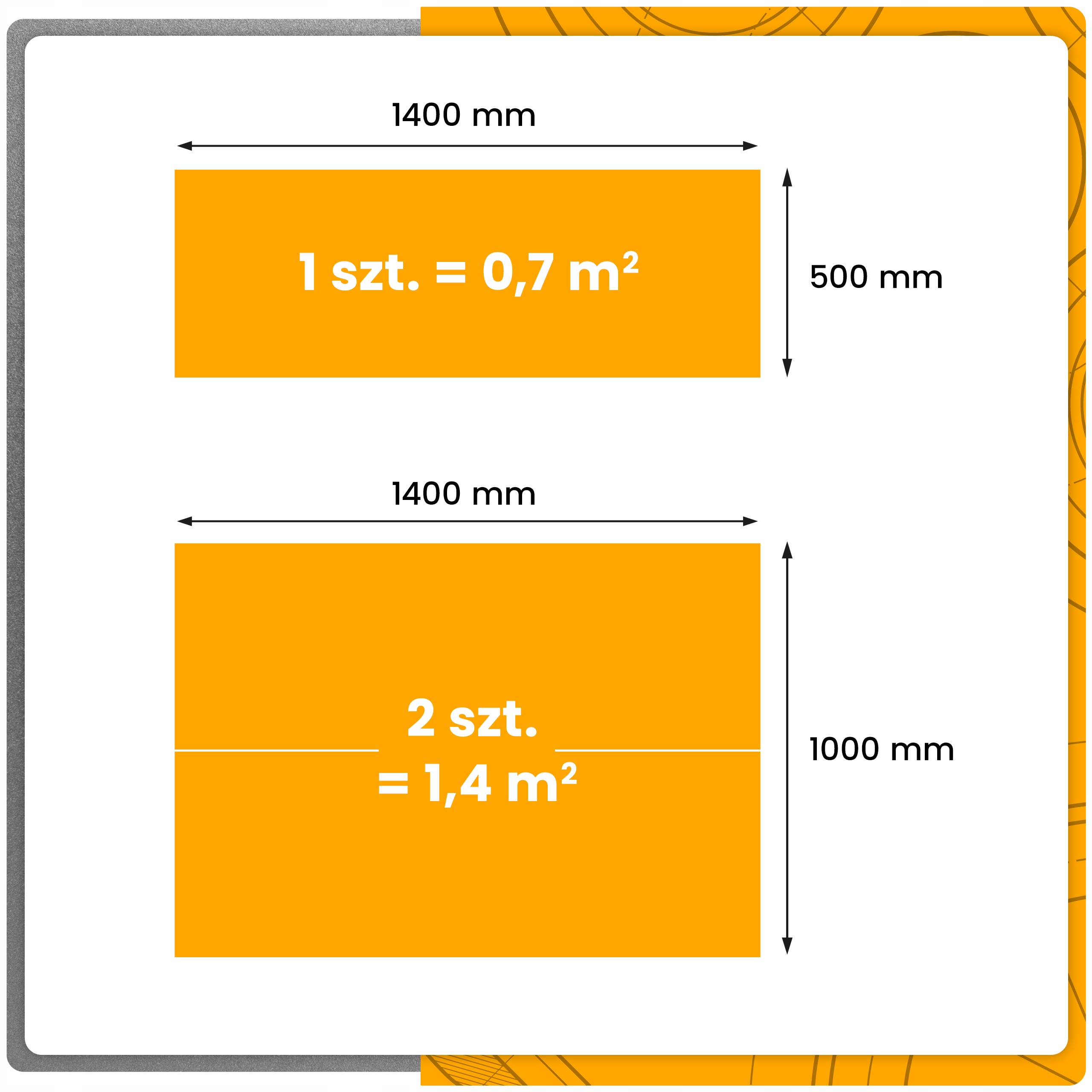 Покупка 2 предмета продукт, вы получите продукт с размером 1 МБ x 1,4 МБ = 1,4 м2.