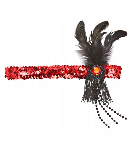 OPASKA RETRO CHARLESTON CZERWONA PIÓRO KORALIKI