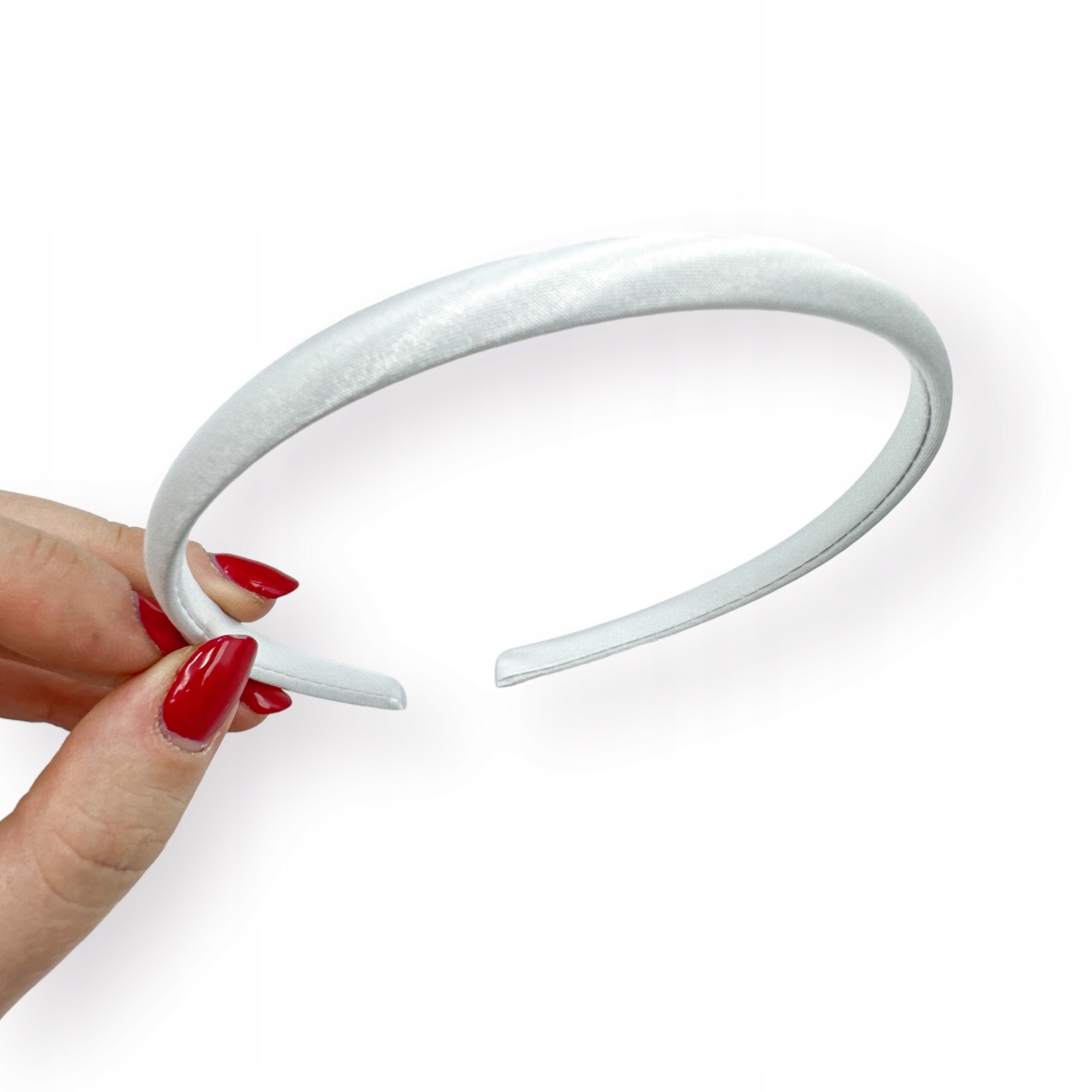 Изумительный ободок на резинке, отделанный белым атласом – элегантное украшение для волос. Размер ремешка универсальный, подойдет как детям, так и взрослым. Он может стать прекрасной основой для создания красивого свадебного обруча или венка. Прекрасное дополнение к стилю Первого Причастия.