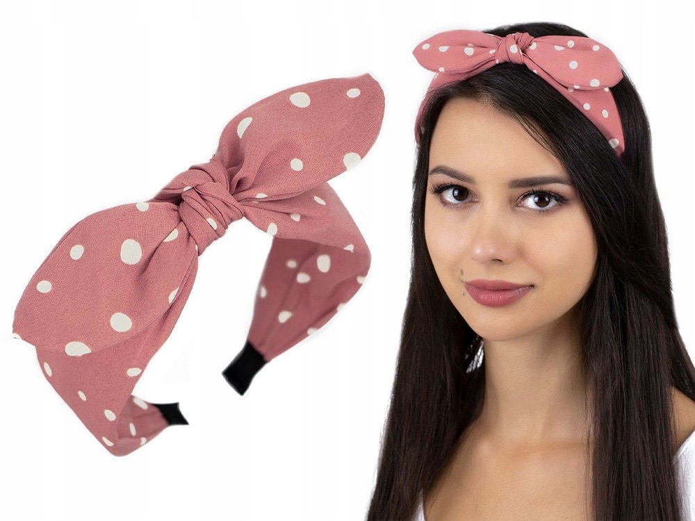 ОБОДКА ДЛЯ ВОЛОС, розовые ТОЧКИ, широкий БАНТ