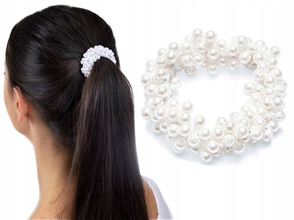 GUMKA DO WŁOSÓW perłowa PERŁY rozciągliwa BIAŁA